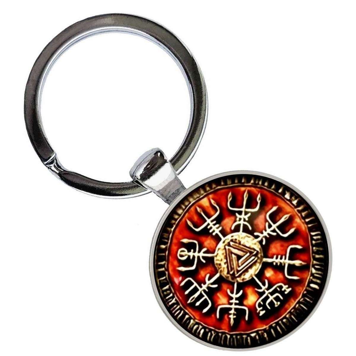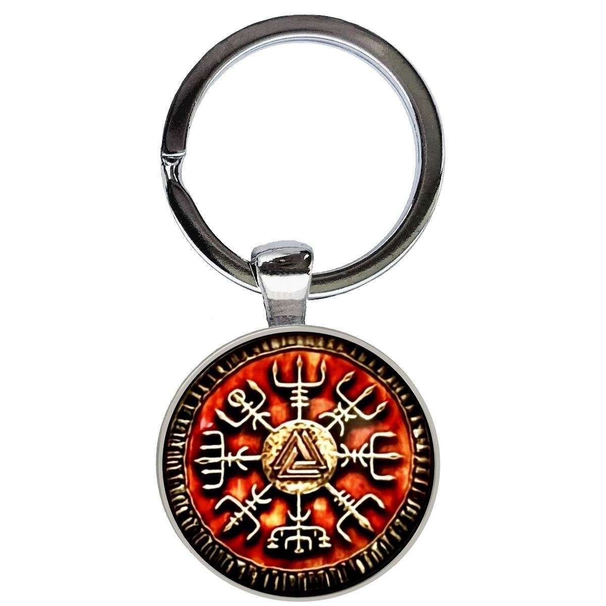 Bassin and Brown Wikinger Norse Symbol Key Ring - verbrannte Orange/Antiquitäten Silber