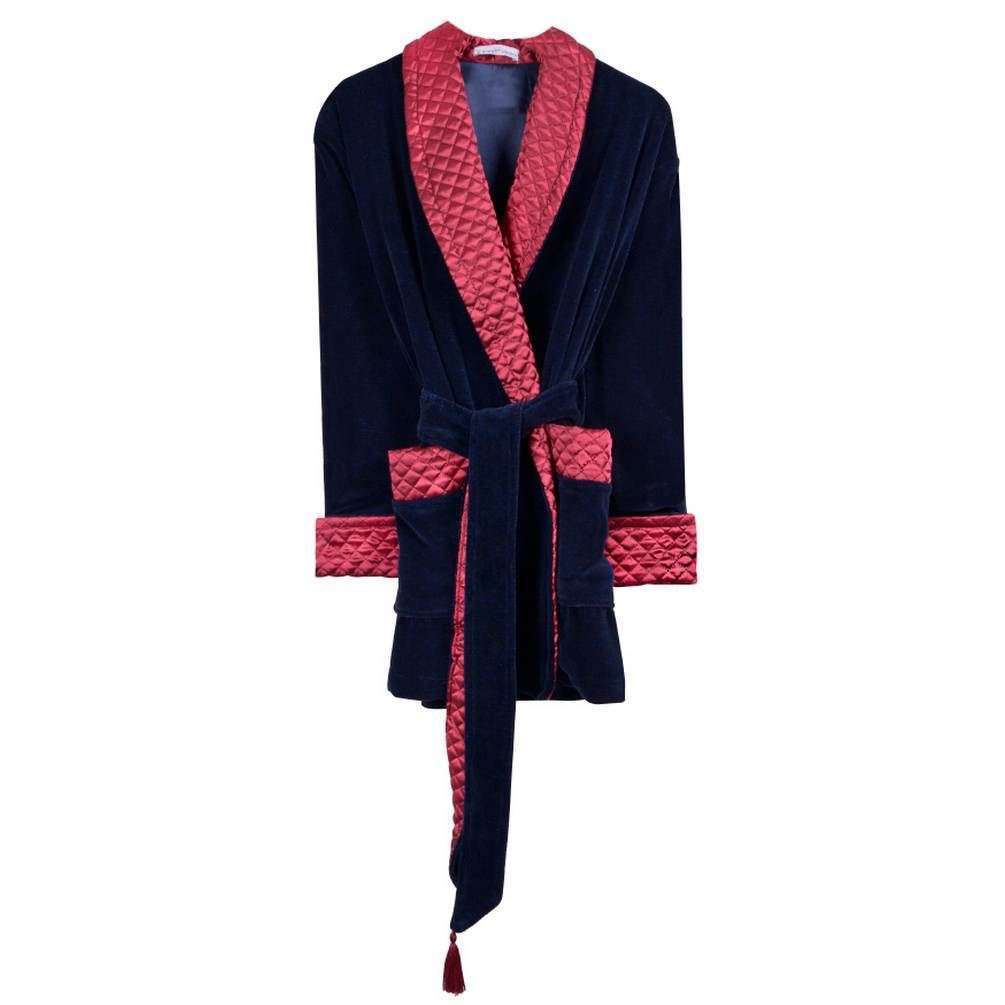 Bown of London Clived Luxury Cotton Short Velvet Smoking Jacke - Marine