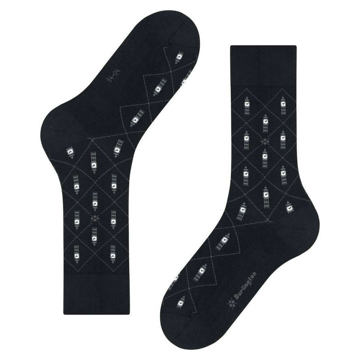 Wir stellen Ihnen diese Big Ben Socken für Herren vor von BurlingtonSie werden aus 74% Baumwolle (Bio), 24% Polyamid (recycelt) und 2% Elasthan (recycelt) in schwarzer Farbe hergestellt. Auch die schwarzen Socken sind in einem einzigartigen Muster entworfen. Es wird empfohlen, bei 40° in der Maschine zu waschen, um diese Socken in gutem Zustand zu halten. Alle Socken werden komplett mit Burlington Socken Tags geliefert. Die Burlington Big Ben Socken: Schwarz verfügen über ein klassisches Argyle-Muster gepaart mit Big Ben Motiven, die diesen Socken einen lustigen britischen Look verleihen. Hergestellt aus ganzjährig gekämmter Baumwolle ist dieses Paar sicher eine tolle Ergänzung für Ihre Sockenschublade.