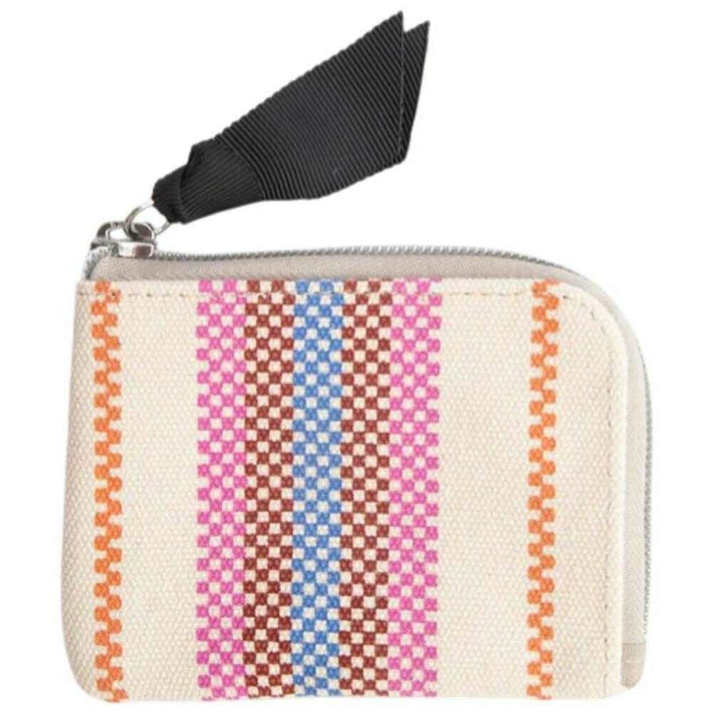 Caroline Gardner Eckgeldbörse aus Segeltuch mit Checkerboard-Streifen, bedruckt – Weiß/Lila/Orange