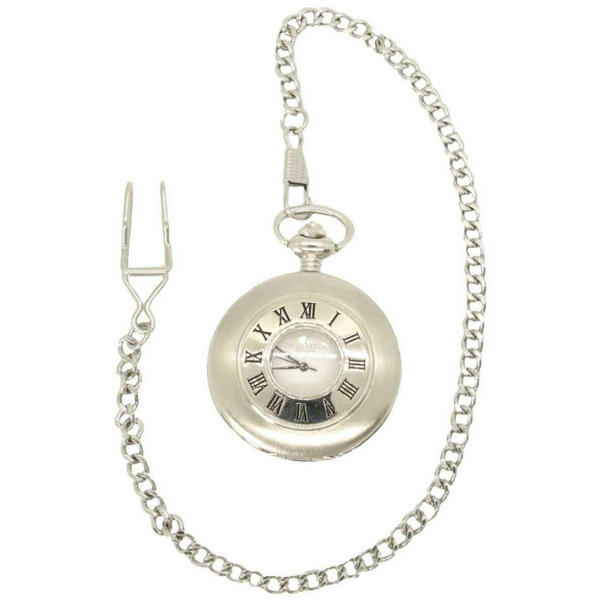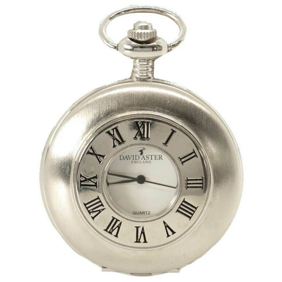 David Aster Quartz Halbjäger Taschenuhr - Silber/Weiß