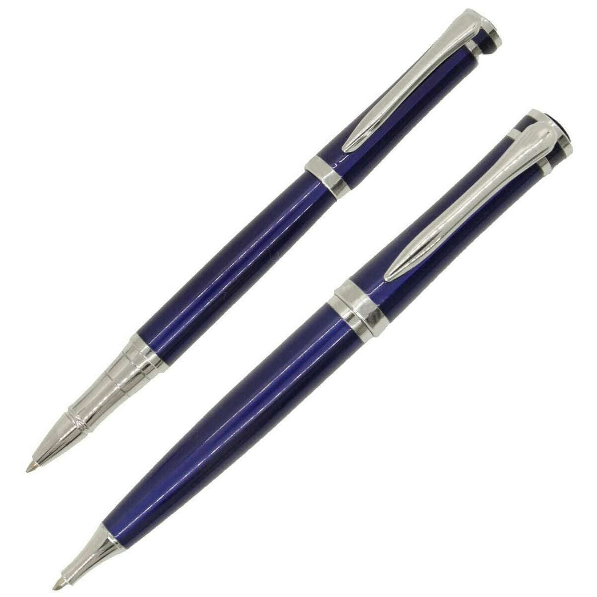 David Aster Rollerball und Kugelschreiber -Set - Blau/Silber