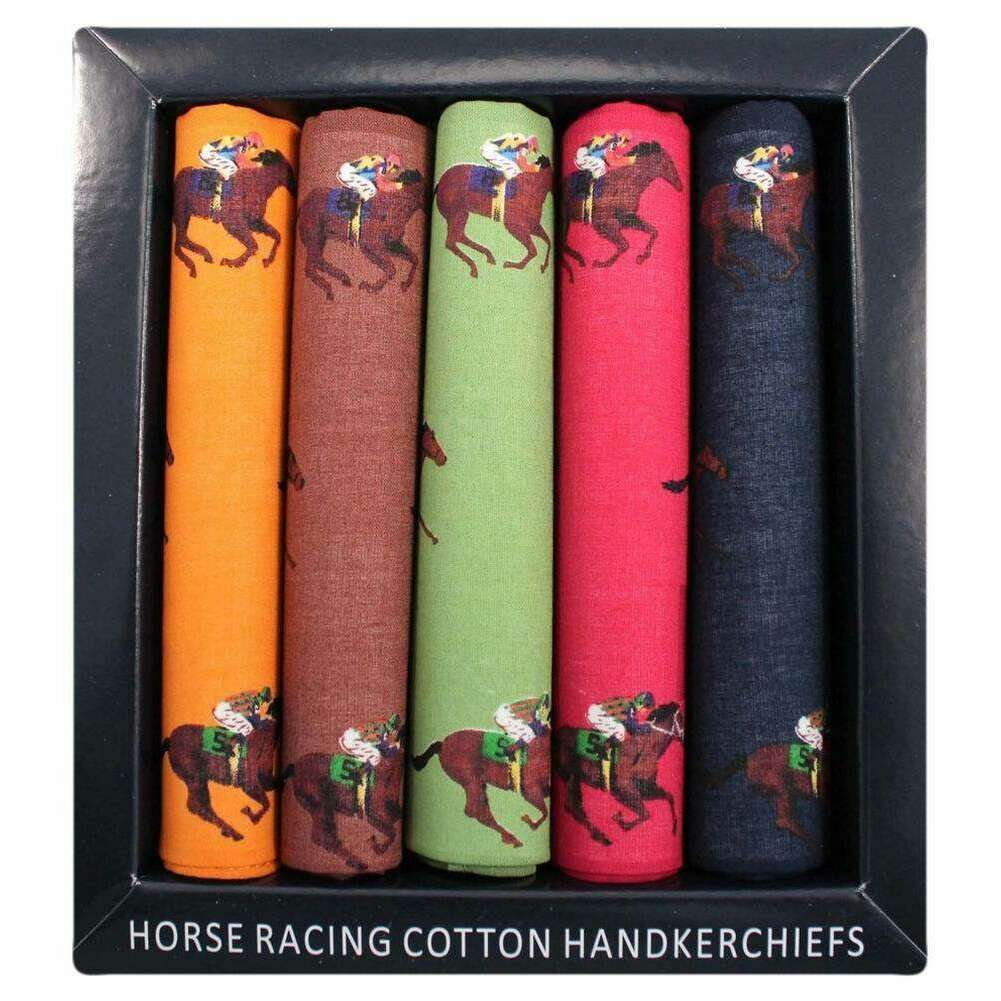David Van Hagen Fünf -Pack -Pferderennspitzen -Baumwolltaschentuch - Mehrfarbig