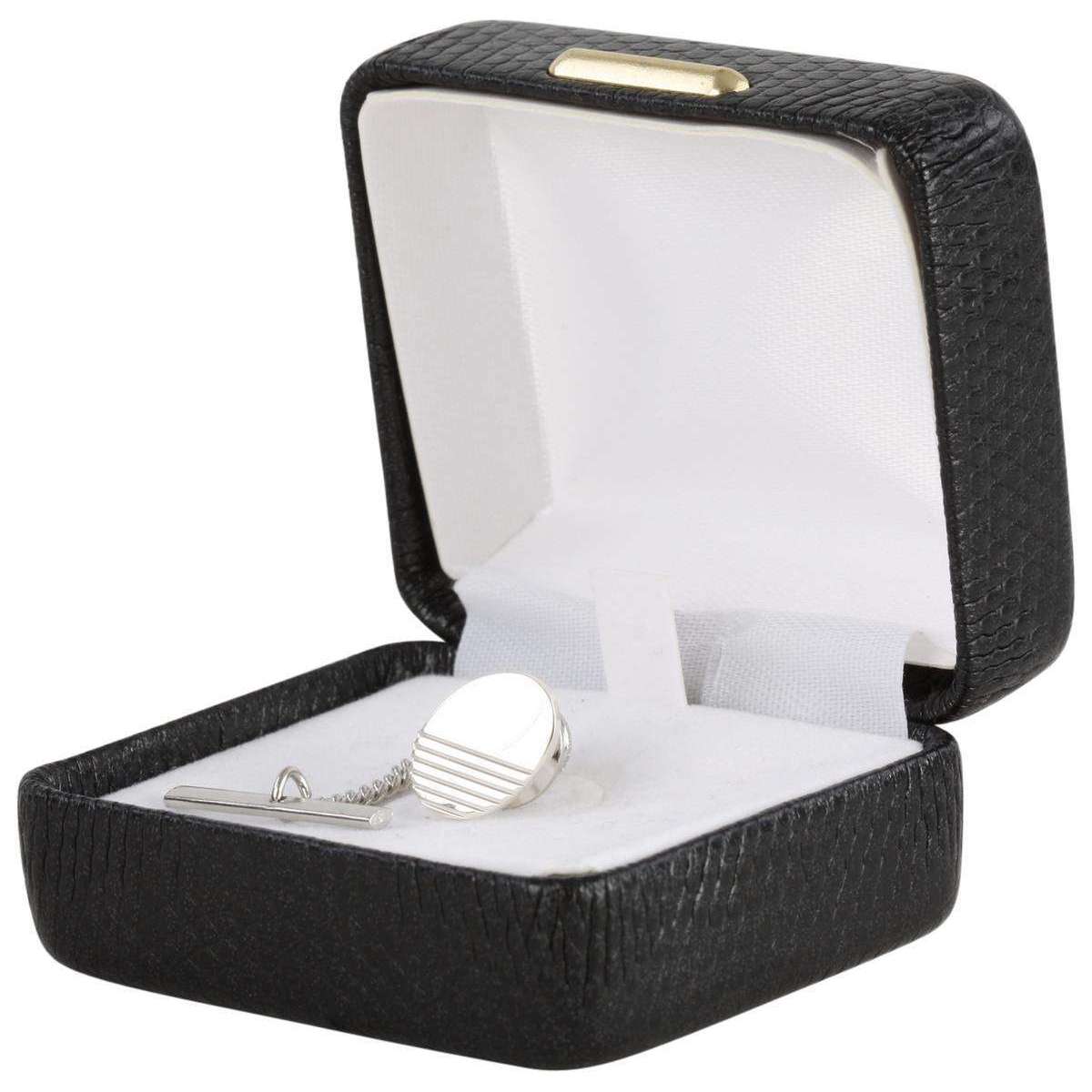 Diese ovale Form David Van Hagen Tie TAC verfügt über ein wunderschön graviertes, ausgekleidetes Muster, das Ihrer formellen Kleidung sicherlich einen Hauch von Klasse verleiht. Dieses hochwertige Sterling -Silber -Stück ist ein Muss für den modernen Mann. Ein ideales Geschenk, das David Van Hagen Der Artikel wird garantiert beeindrucken.