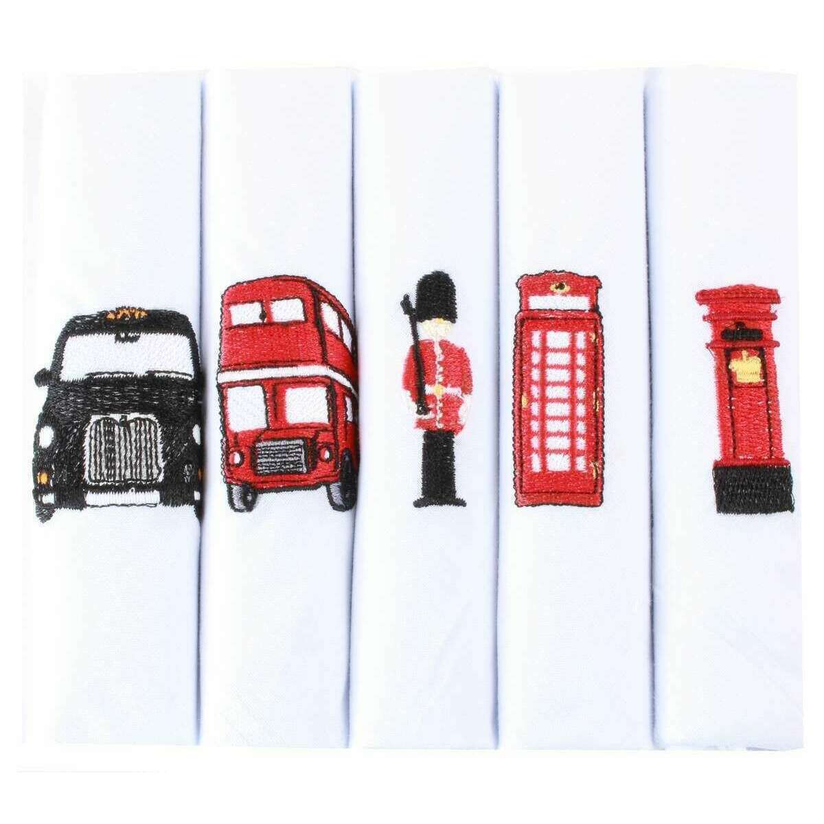David Van Hagen London 5 Pack Taschentuch - Weiß/Rot/Schwarz