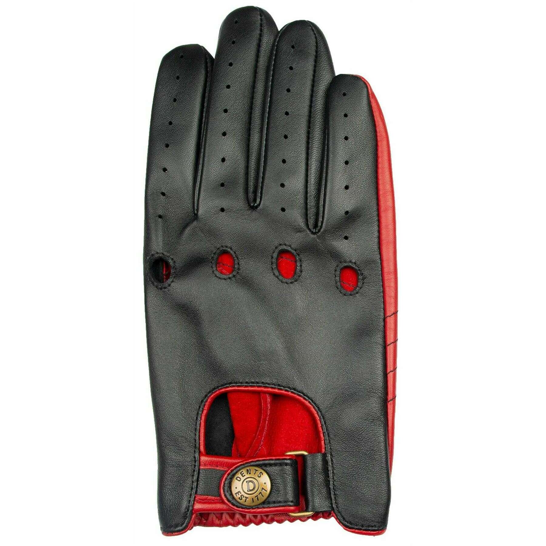 Dents Aintree Zweifarbige Leder-Fahrhandschuhe – Schwarz/Beerenrot