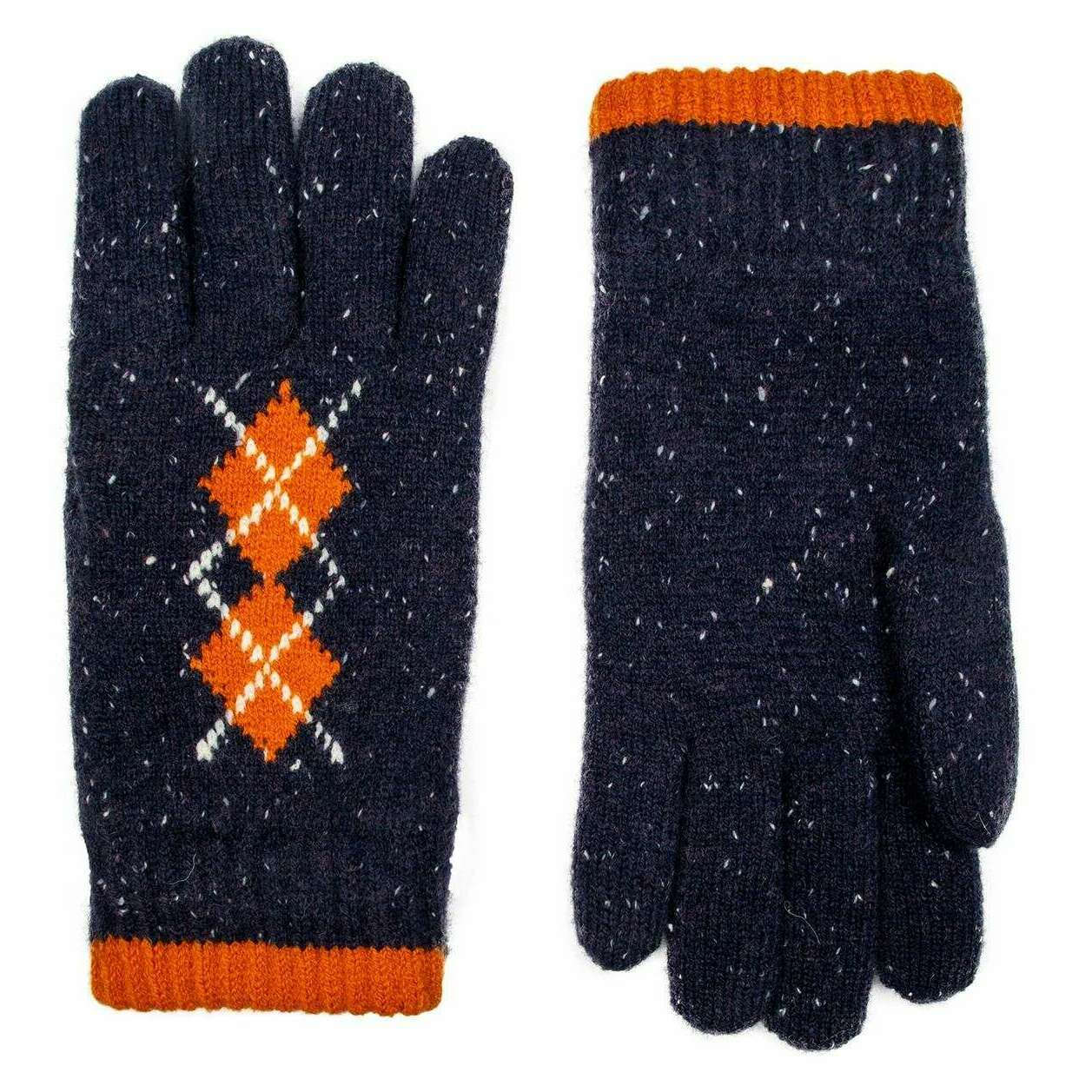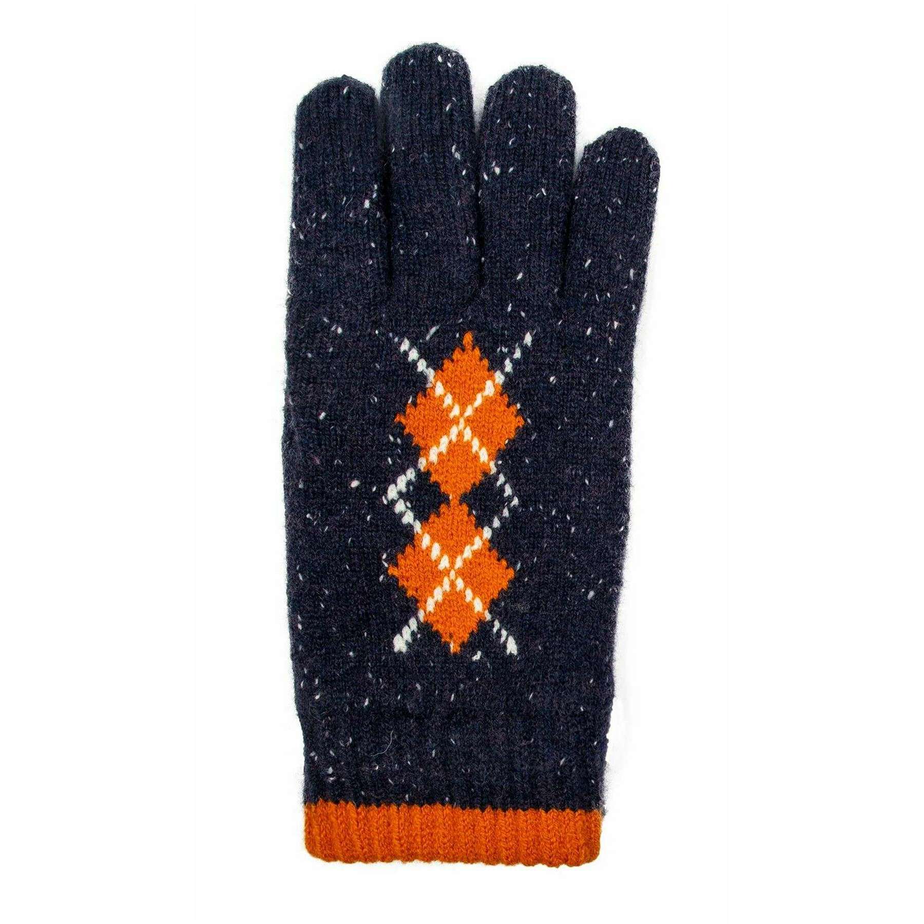 Dents Argyle Margelgarn gestrickte Handschuhe - Marine/Kürbisorange