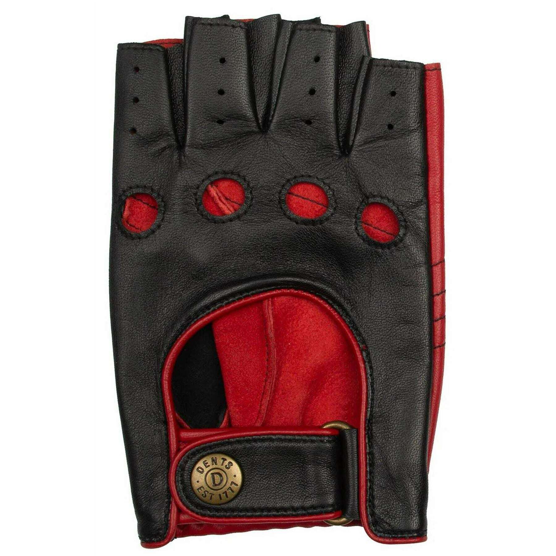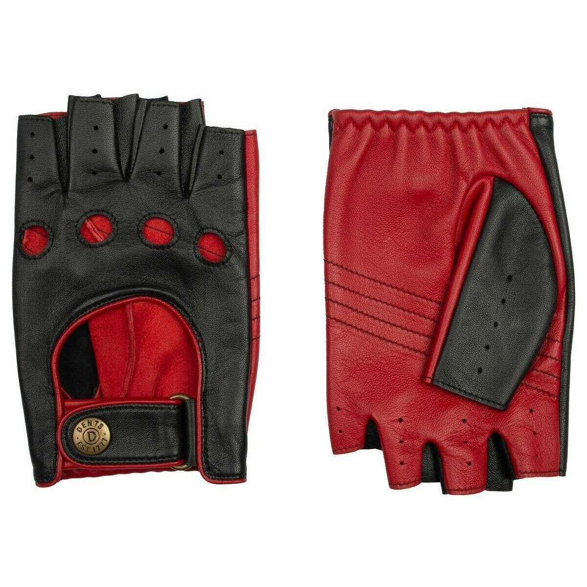 Dents Fingerlose Cadwell-Fahrerhandschuhe aus zweifarbigem Leder – Schwarz/Beerenrot