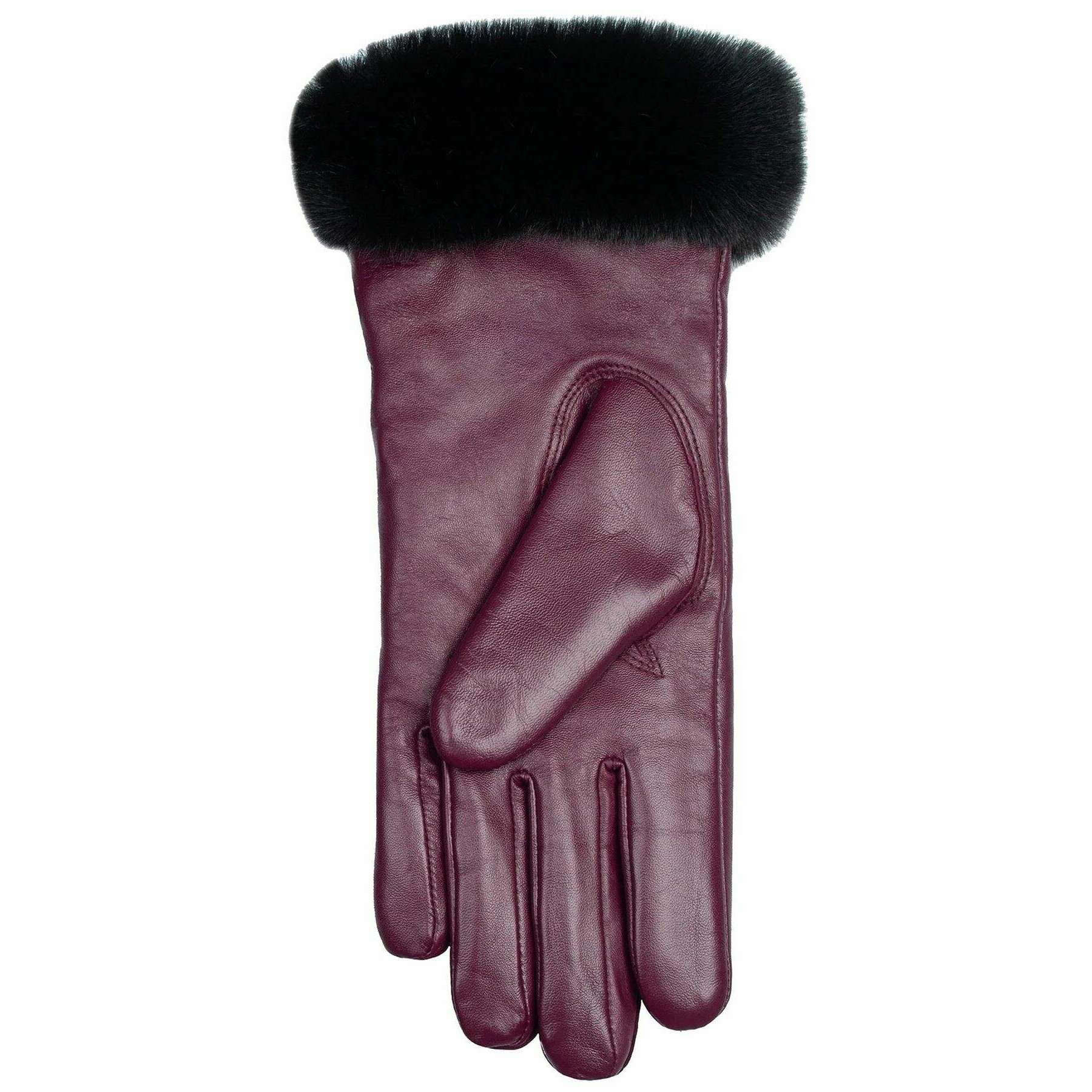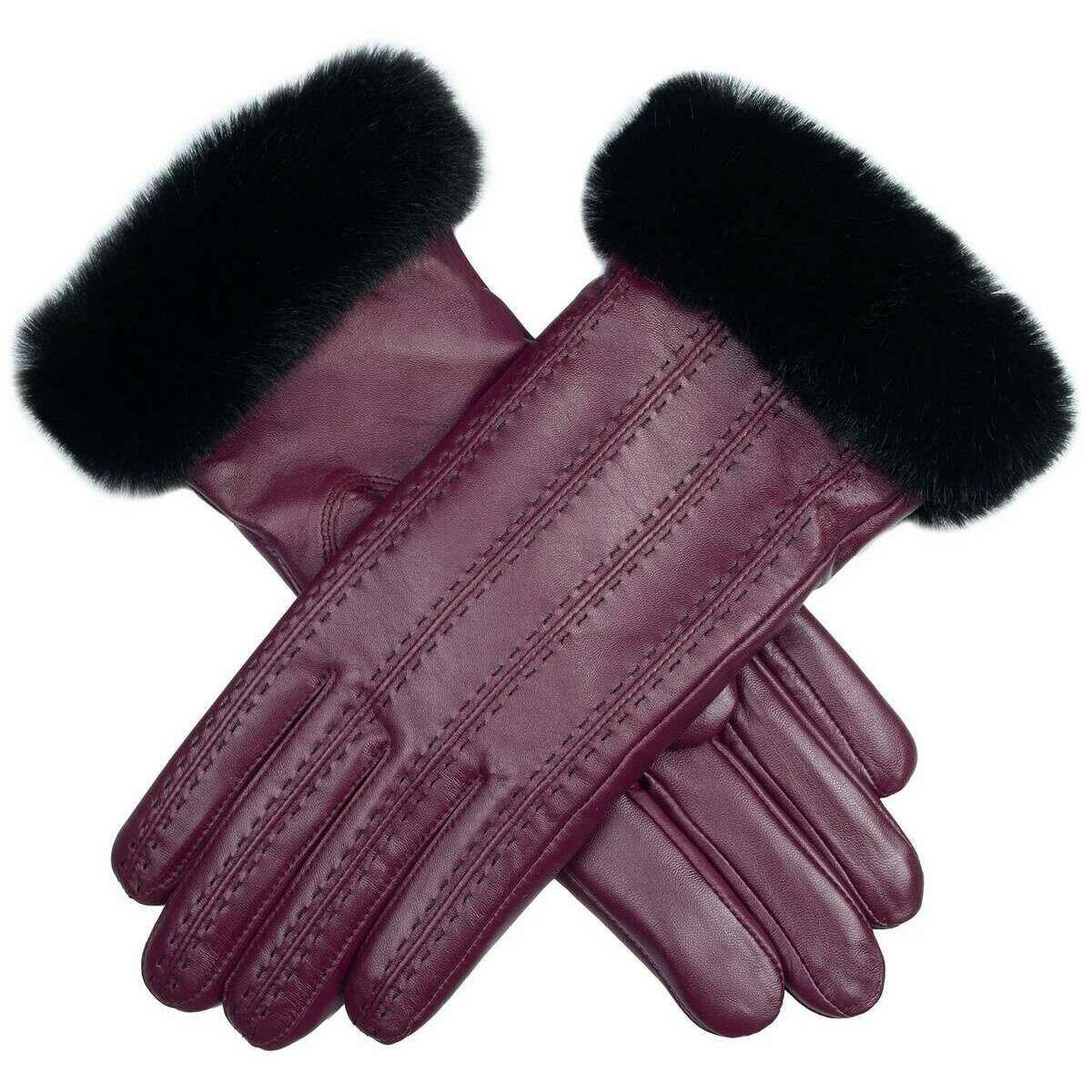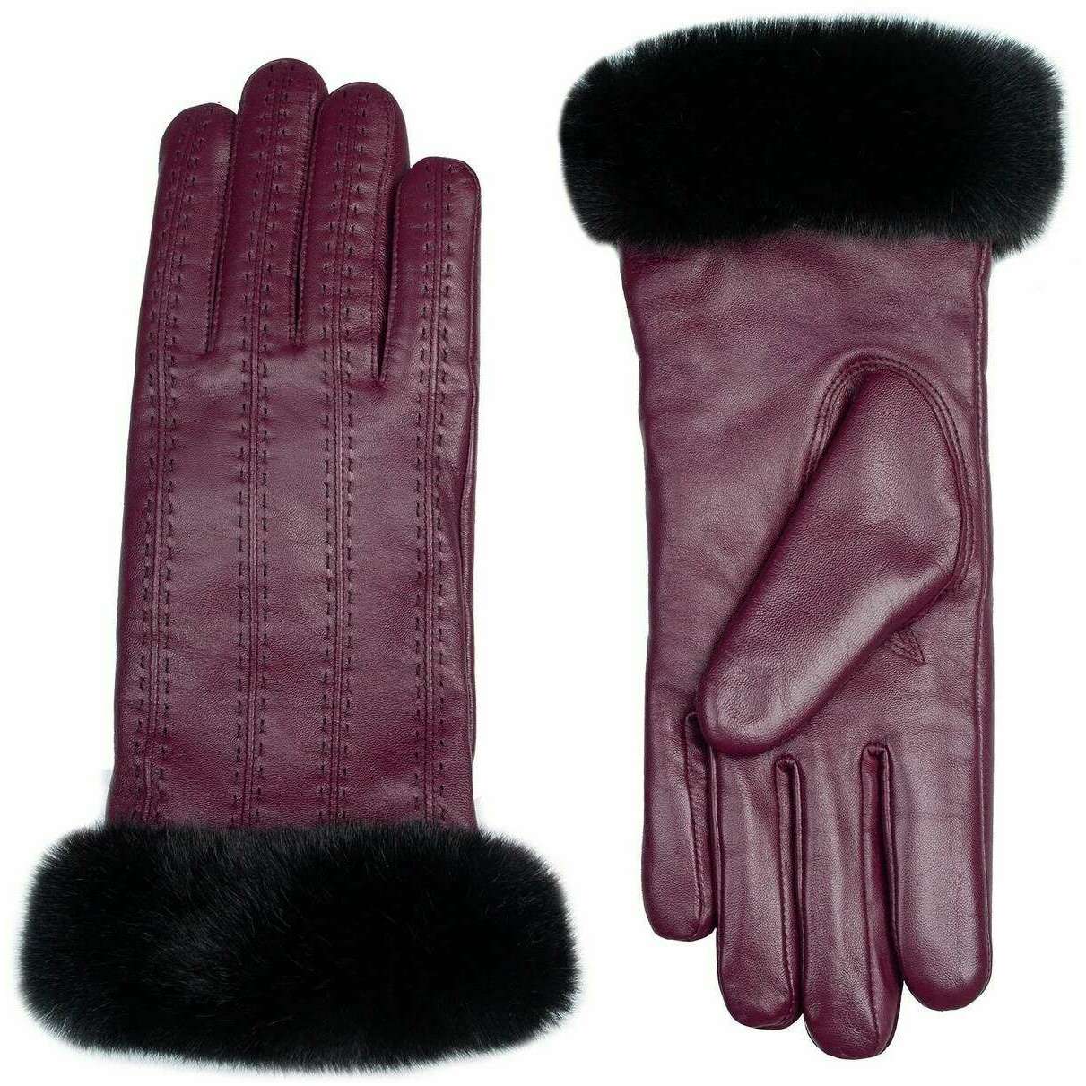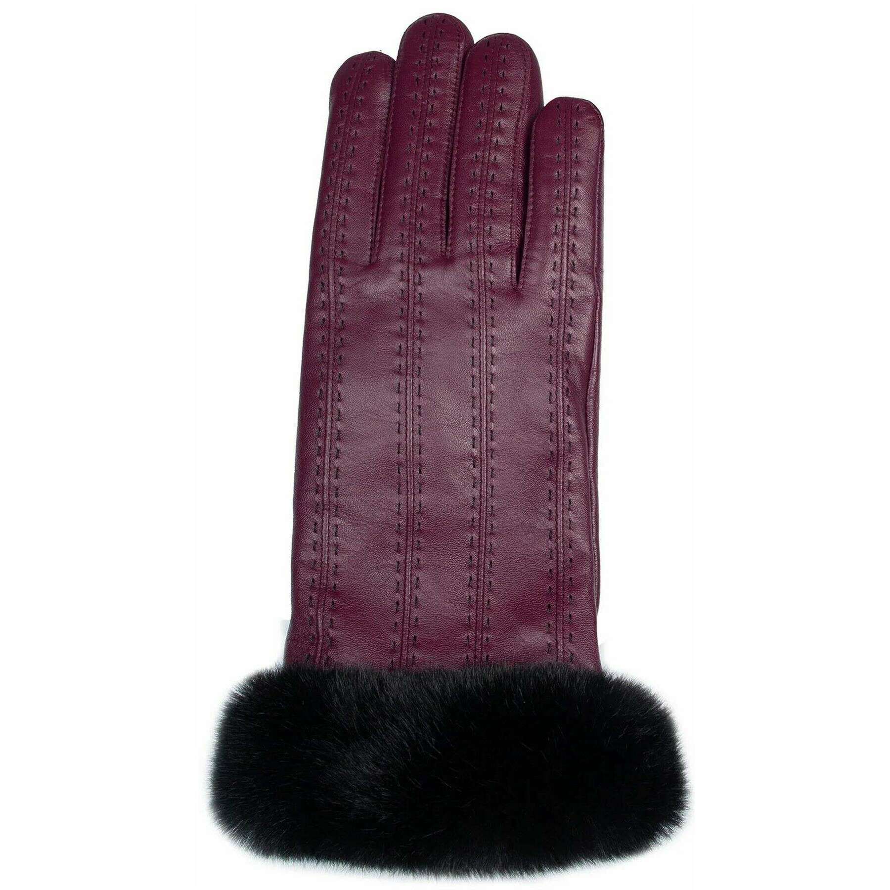 Dents Cassie Lederhandschuhe mit Kontrastnähten – Damson Burgund/Schwarz
