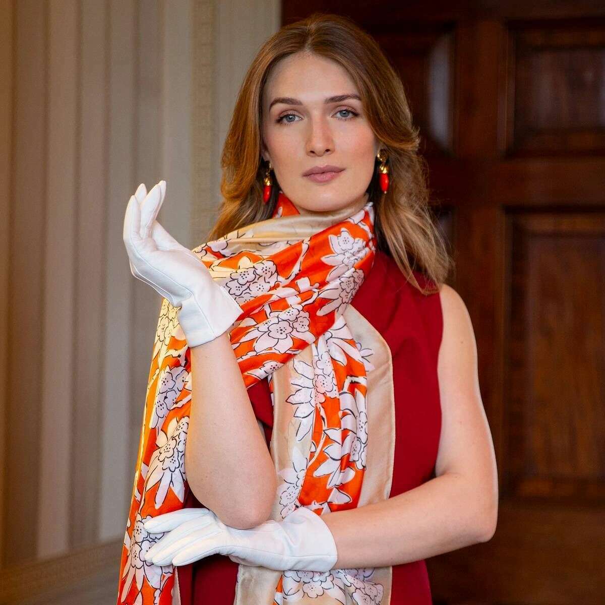 Dents Felicity Drei -Punkte -Seiden -Lederhandschuhe - Perlencreme