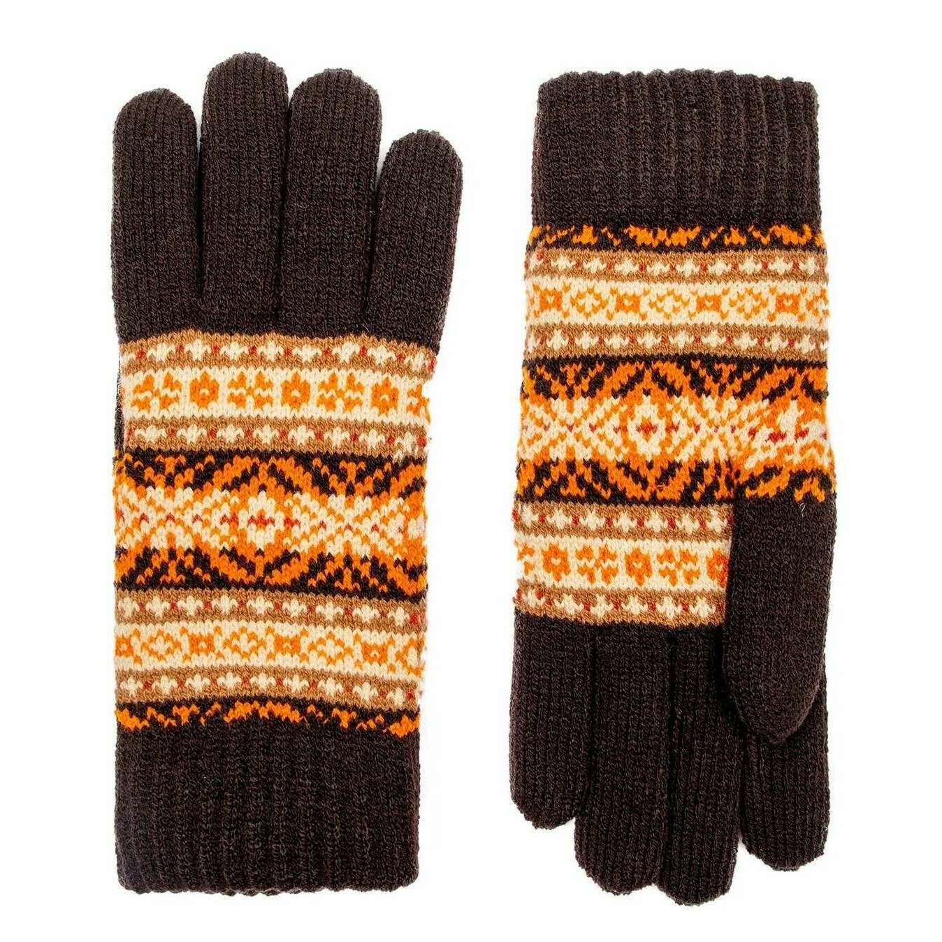Dents Jacquard Fair Isle Strickhandschuhe - Schokoladenbraun