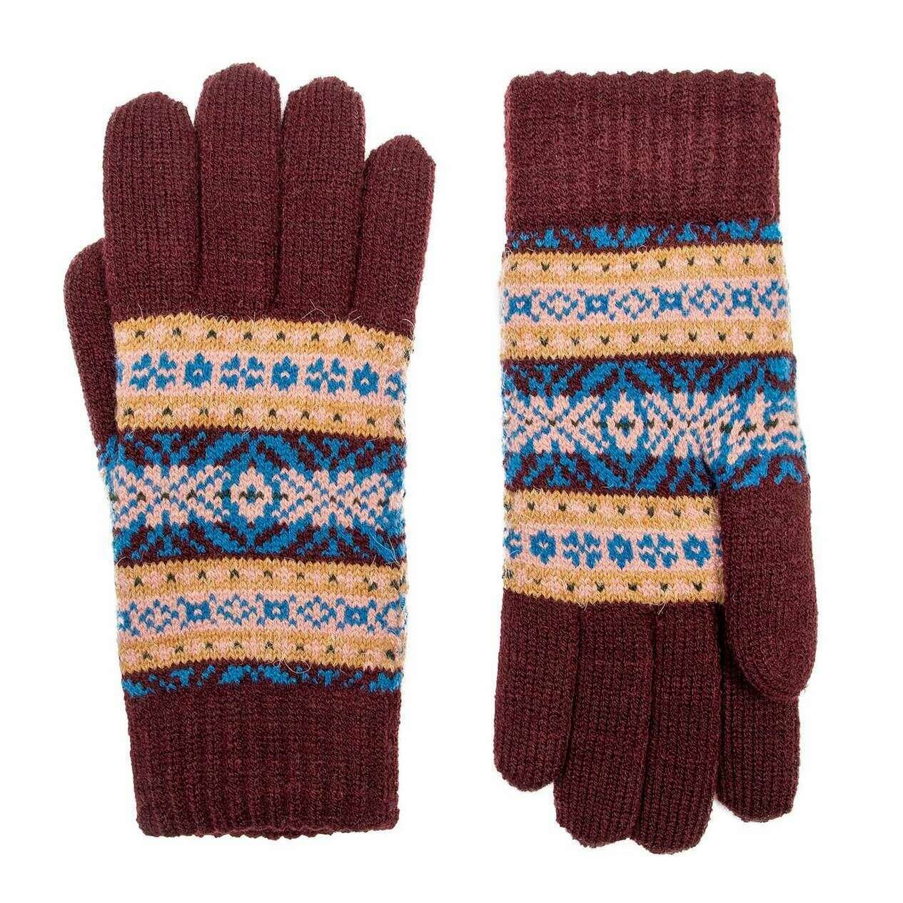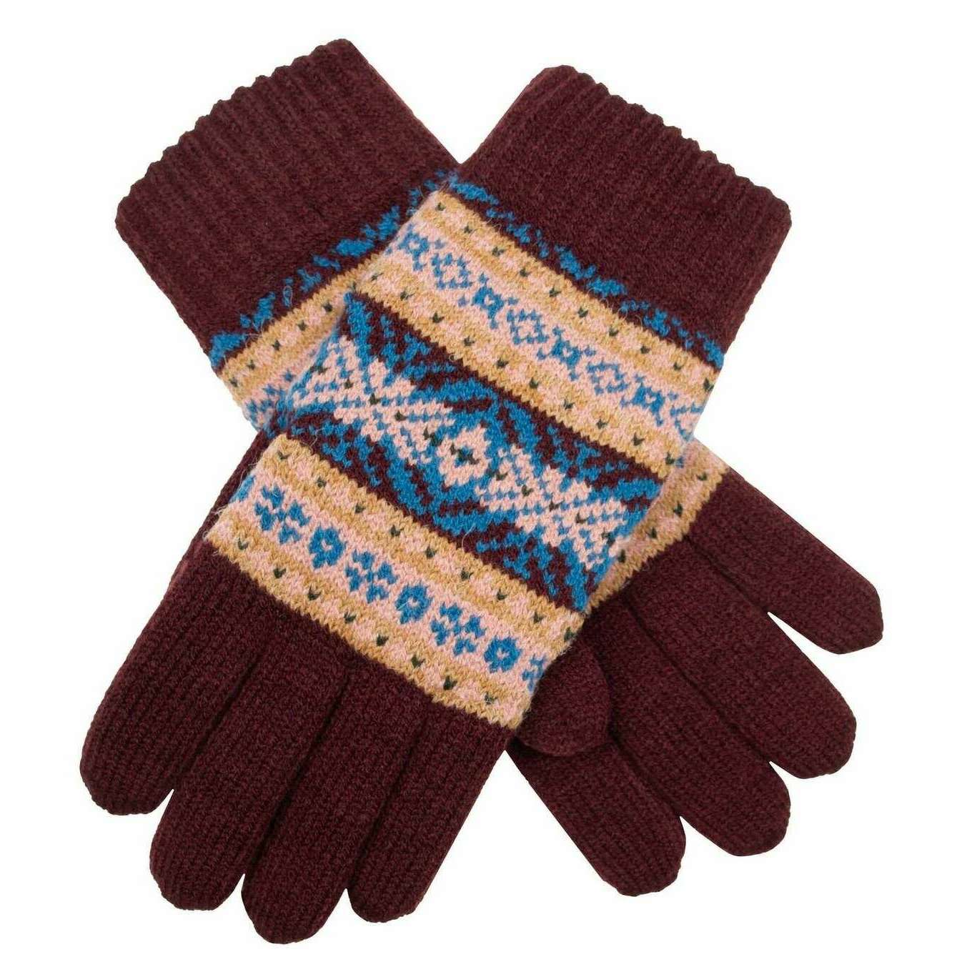 Dents Jacquard Fair Isle Strickhandschuhe - Damson Burgundy
