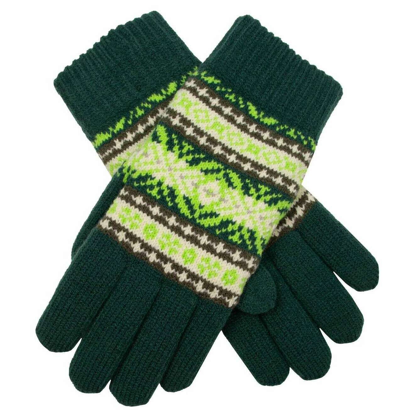 Dents Jacquard Fair Isle Strickhandschuhe - Olivengrün