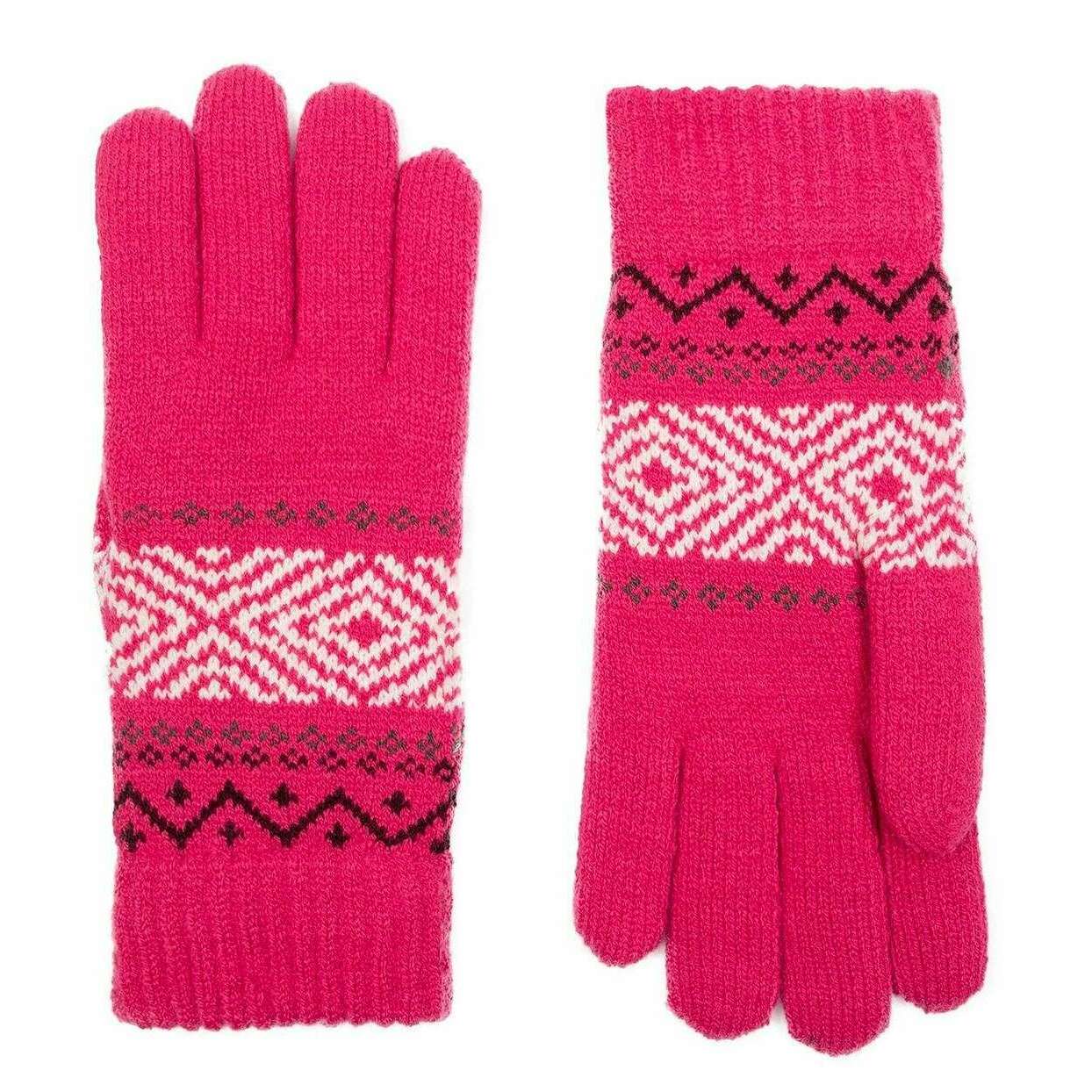 Dents Jacquard Geometrische Strickhandschuhe - Fuchsia Pink