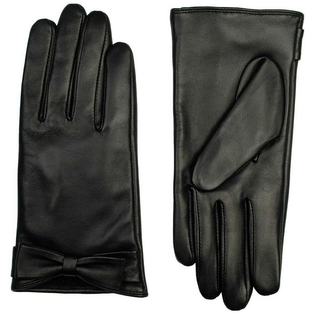 Dents Laurie Bow Lederhandschuhe – Schwarz