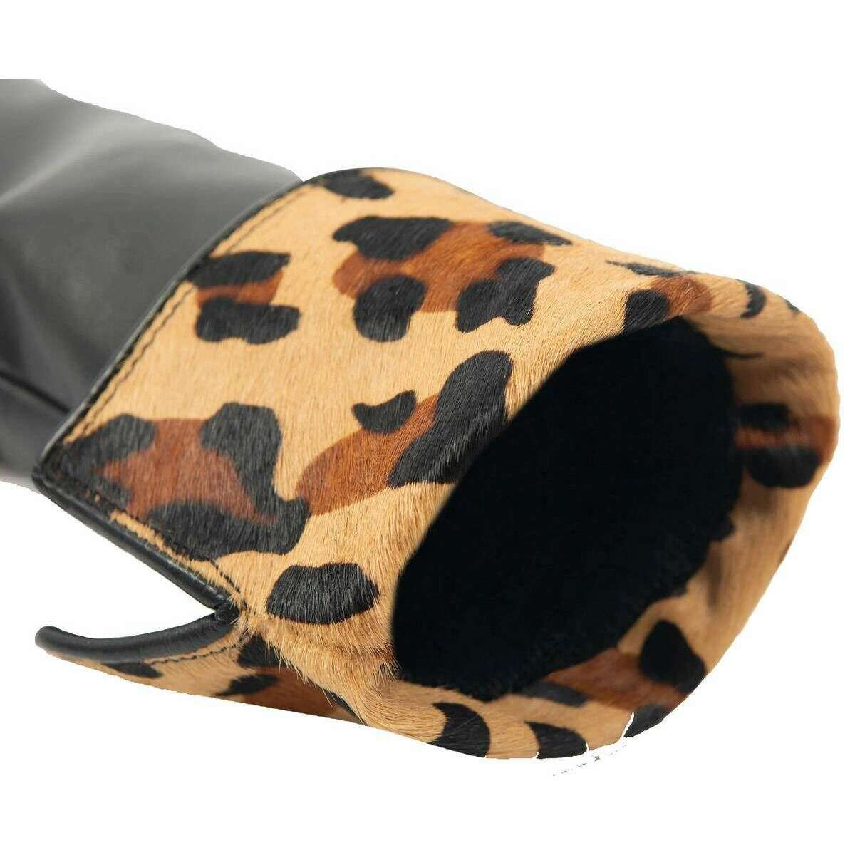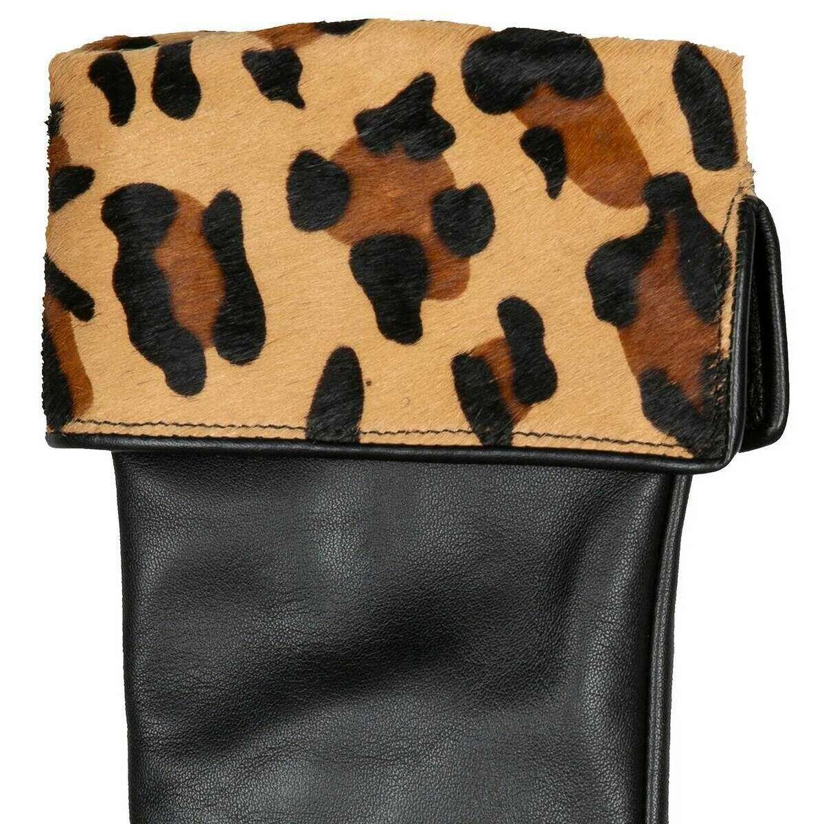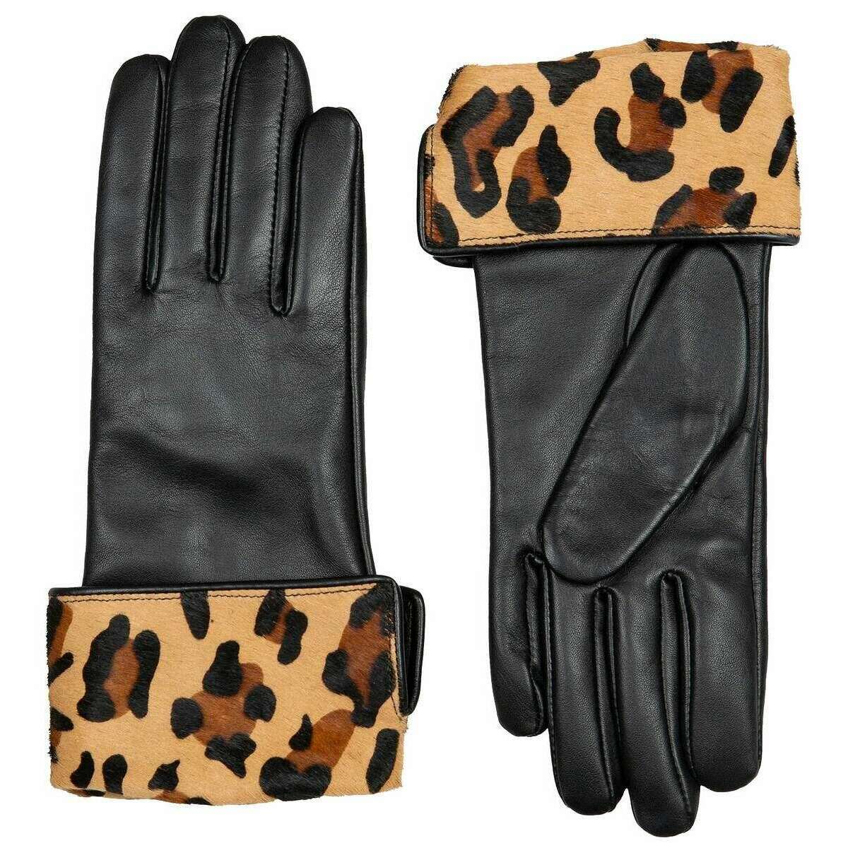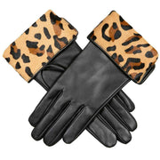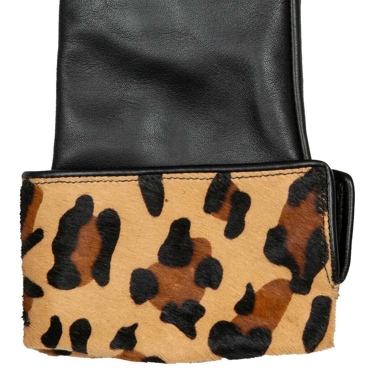 Dents Maya Ponyskin Leopardenmuster Manschette Lederhandschuhe - Schwarz
