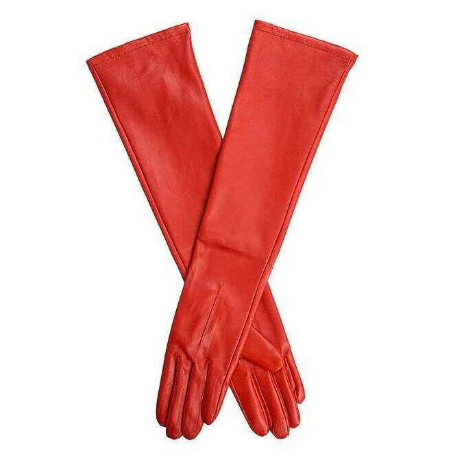 Dents Mia einspitzen long über dem Ellbogen ausgekleidete Lederhandschuhe-Chili rot