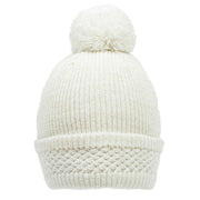 Dents Gerippte Bommelmütze aus metallischem Garn – Winterweiß
