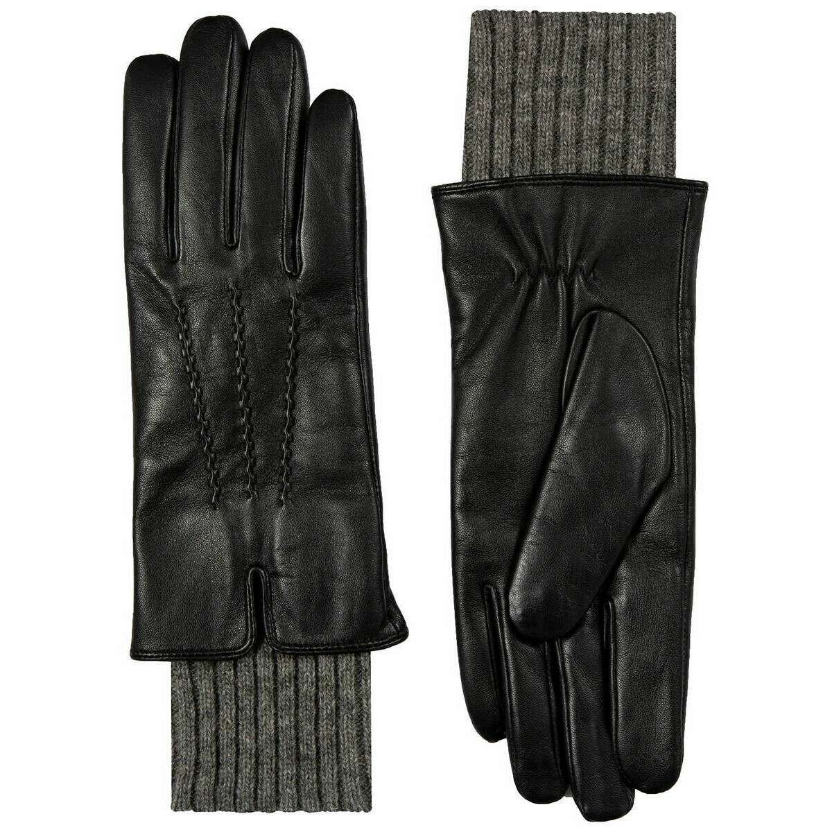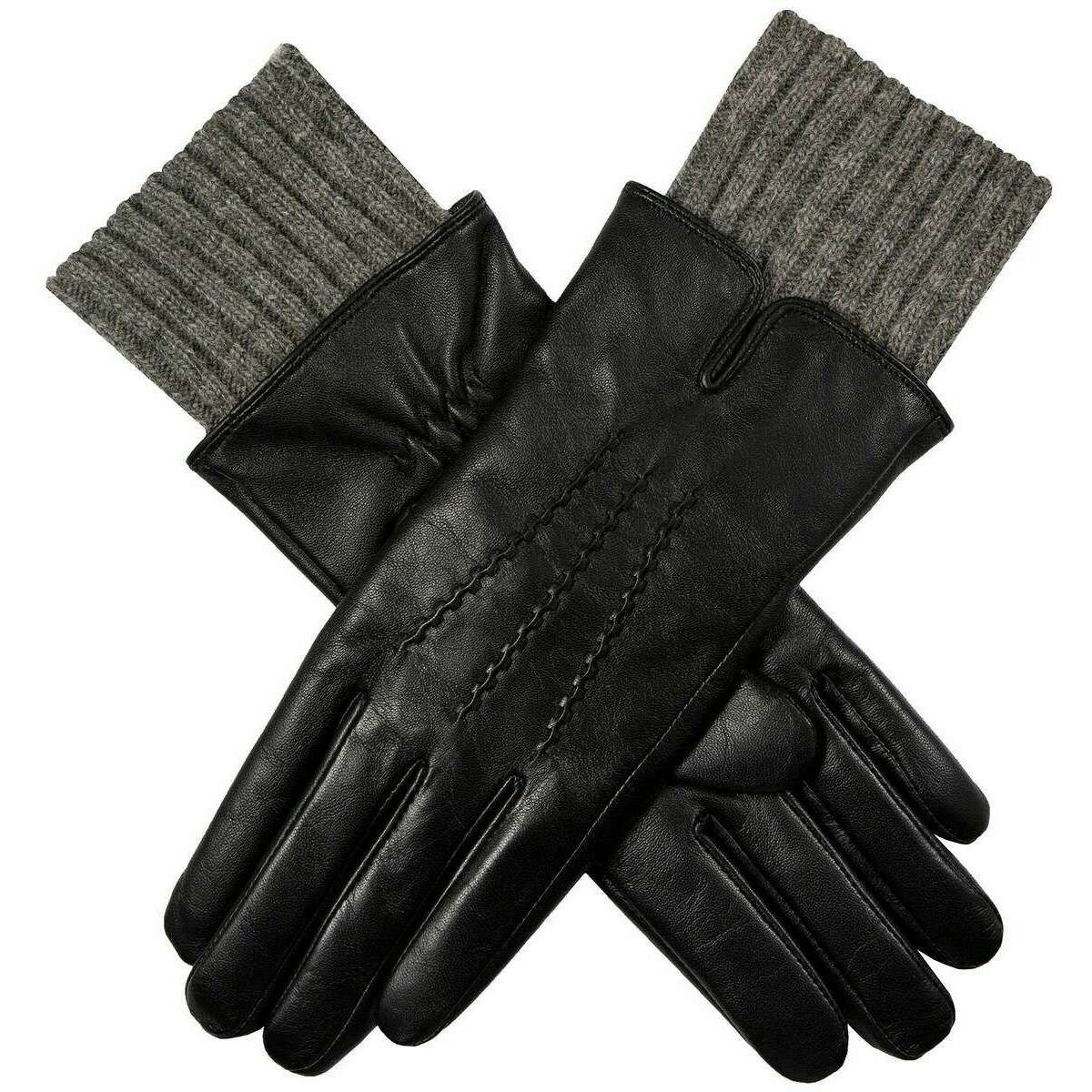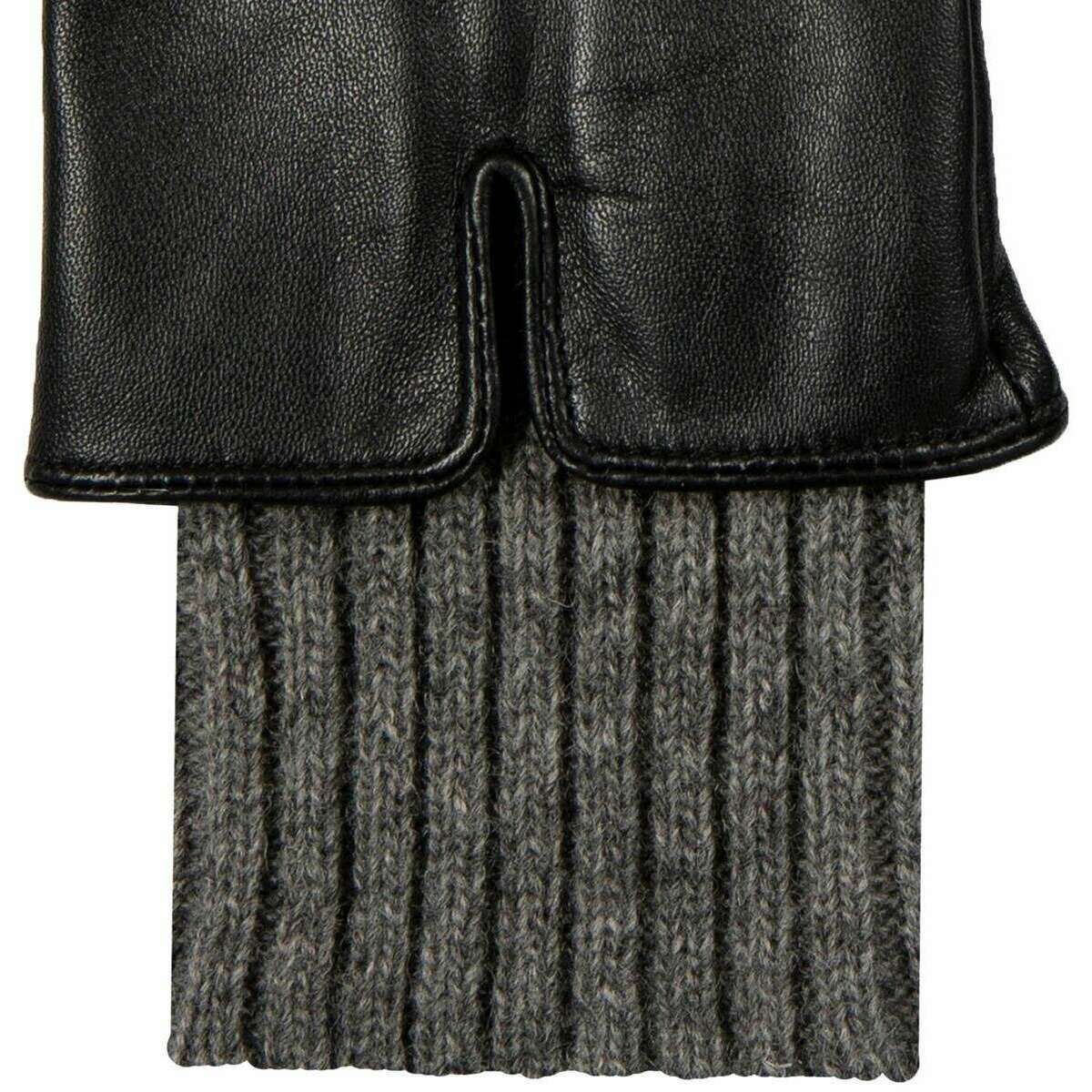 Dents Tamara gestrickte Manschetten -Lederhandschuhe - Schwarz/Holzkohle