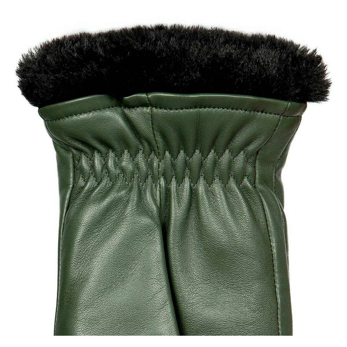 • Weiche Fellfachmanschetten, weiche Kunstpelzfutter, drei Punkte dekorative Nähte, Innennähte, elastisches inneres Handgelenk
