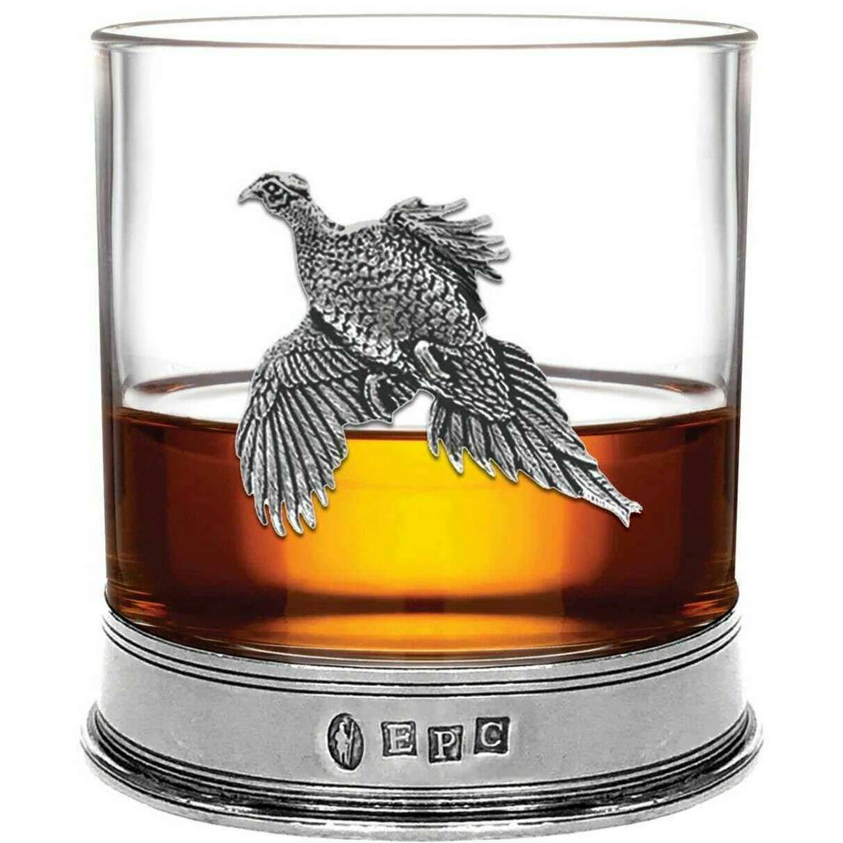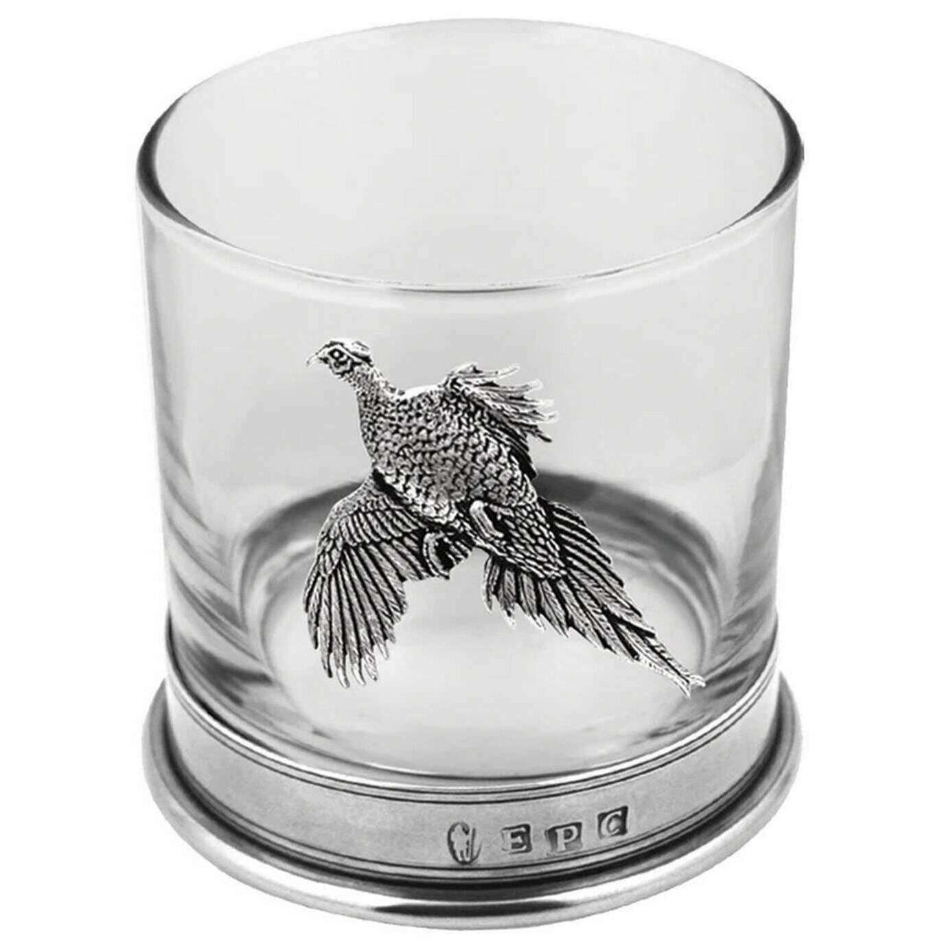 Englische Zinnfirma 11oz Single -Fasanen -Tumbler - Silber/klar
