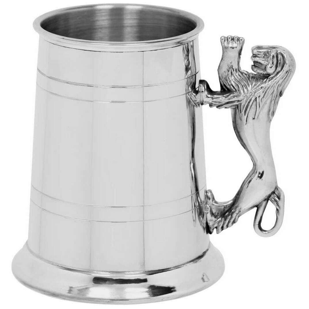 Dieser 1PT Lion Tankard für Männer oder Frauen wird von der Brand English Pewter Company in einer silbernen Farbe hergestellt und aus Zinn hergestellt. Es misst 12,75 cm (Höhe). Alle Getränke- und Glaswaren sind in einer englischen Geschenkbox mit Zinnfirmen abgeschlossen. Der englische Zinnunternehmen 1PT Lion Tankard - Silver ist das perfekte Geschenk für jemanden, der etwas Besonderes ist oder zu Ihrem Getränke versorgt wird. Es verfügt über einen robusten Griff mit einem komplizierten Design und bietet mit seinem gewichtigen Finish einen klassischen Attraktivität. Füllen Sie es mit Ihrem Lieblings -Bier oder Ihrem Craft Beer auf und setzen Sie einen Toast für den besonderen Anlass. Das hochwertige Material sorgt dafür, dass es zeitlosen Charme verleiht.