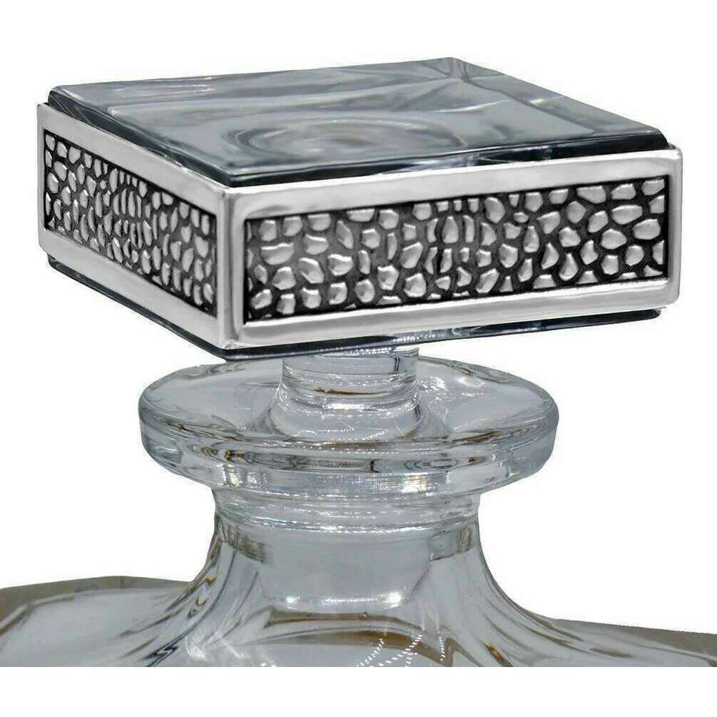 Englische Zinnfirma 650 ml Regaler Hirsch -Rechteck -Dekanter - Silber/Clear