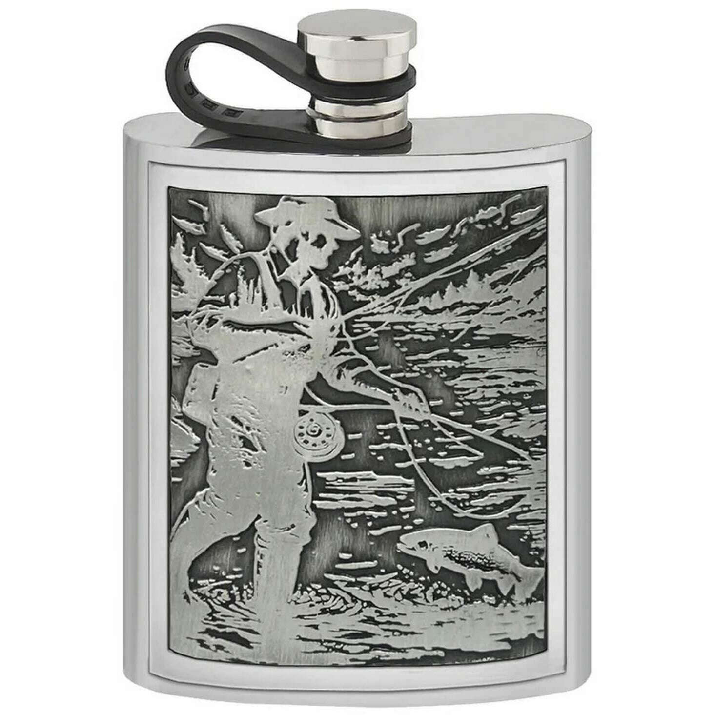 Englische Zinnfirma 6oz geprägte Fischerei Hüftflasche - Silber