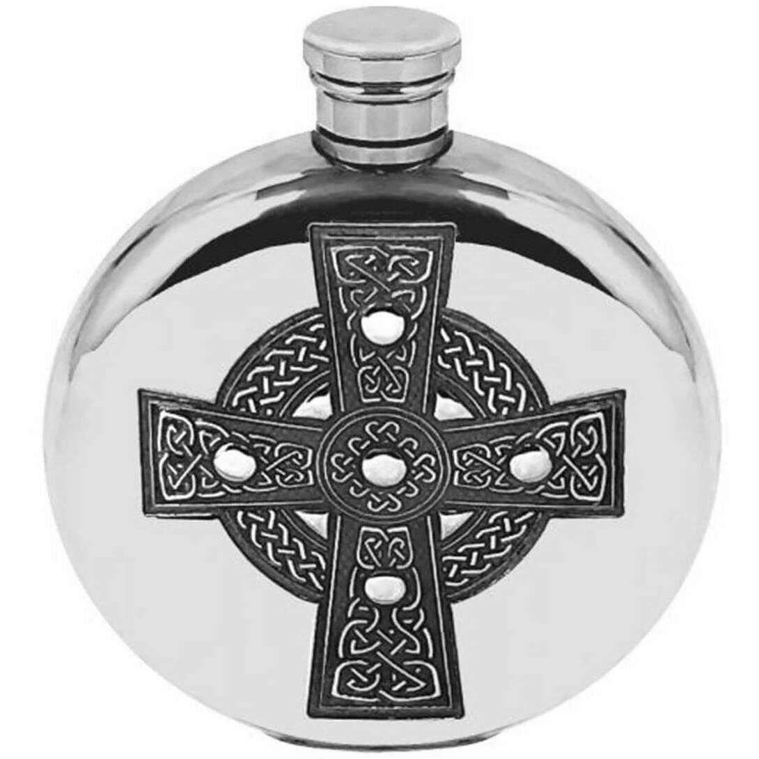 Englische Zinnfirma 6oz runde Keltische Kreuzflächen - Silber