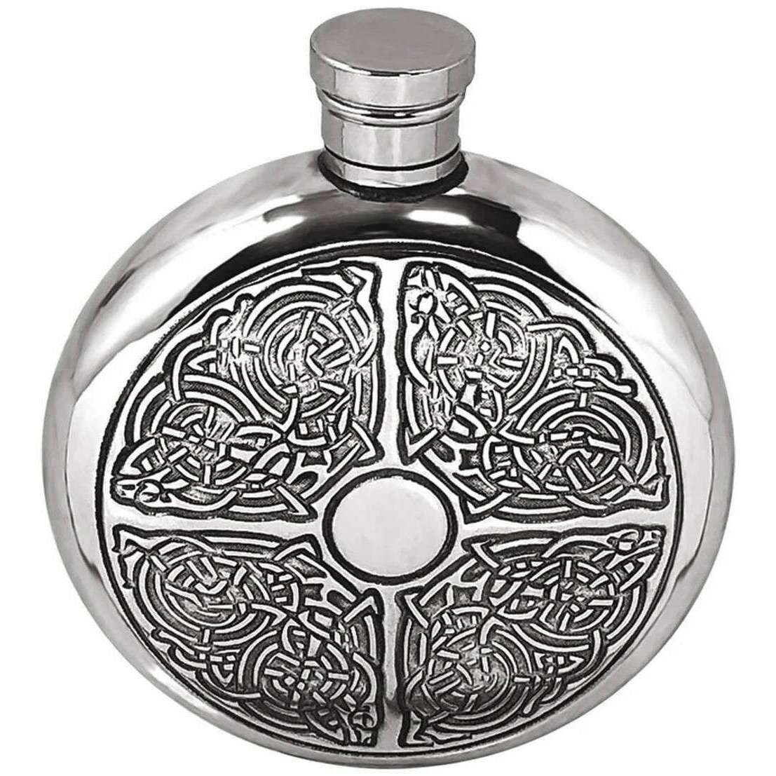 Englische Zinnfirma 6oz Runde Keltikknotenflasche - Silber