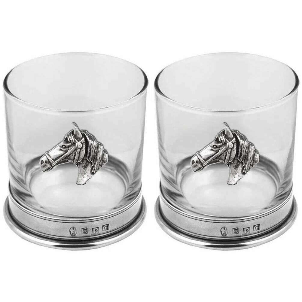 Englische Zinnfirma Equestrian Double Tumbler Set - Silber