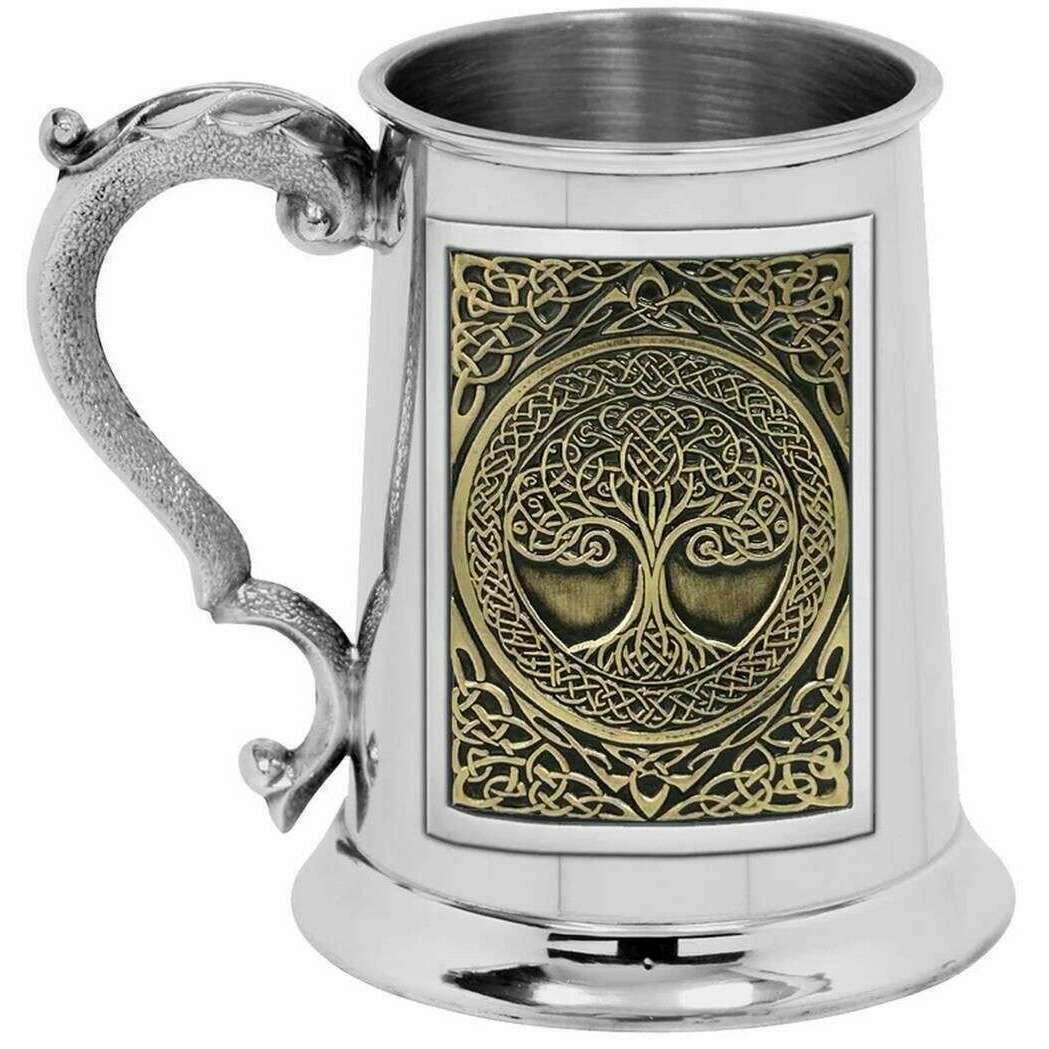 Englische Zinnfirma Tree of Life 1 Pint Tankard - Silber/Messing Gold