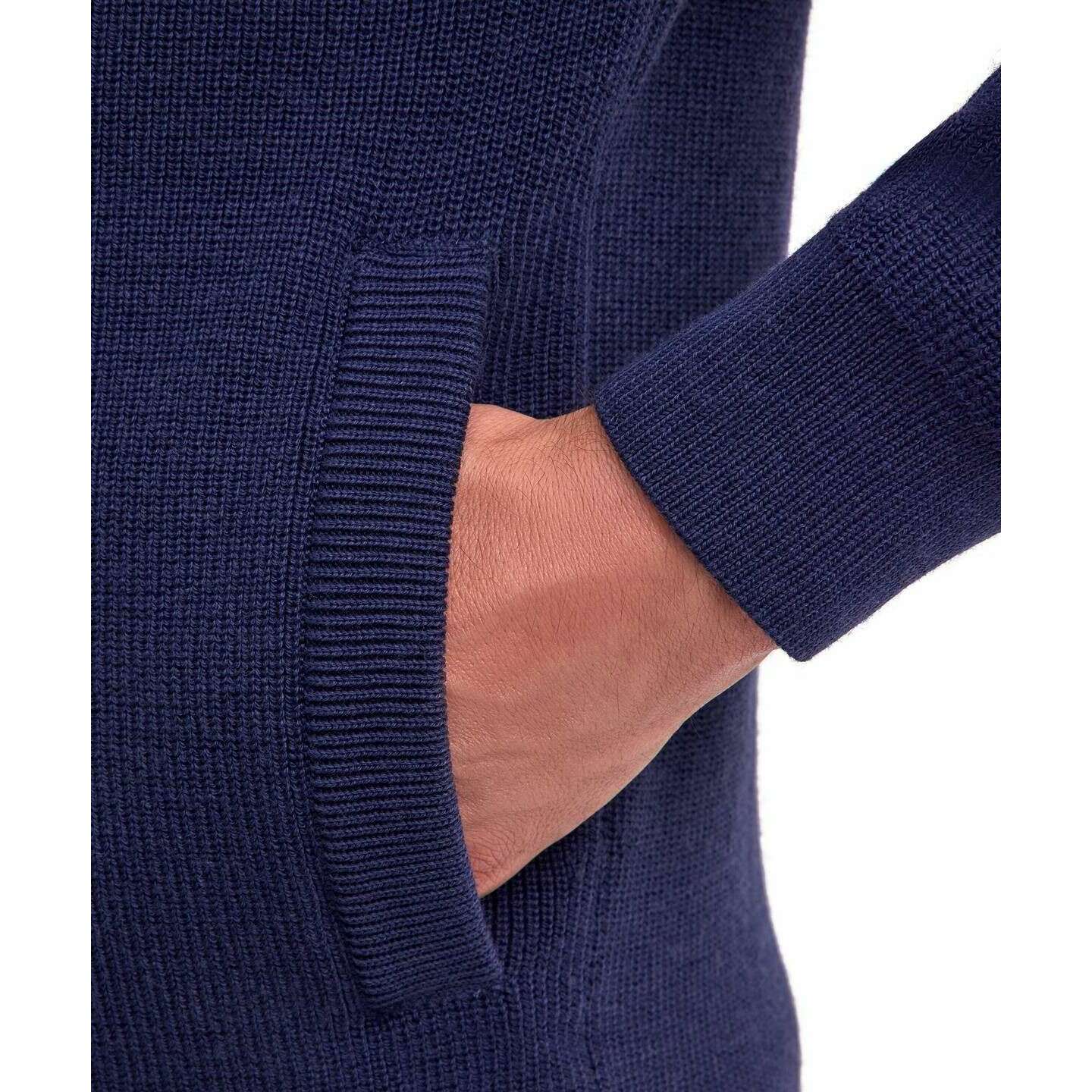 • Zertifizierte Bio-Baumwolle, Schurwolle, Seitentaschen, normale Passform, Perlenfangstruktur, Doppelreißverschluss, hochwertig, „Fully Fashioned“-Verarbeitung, langlebig