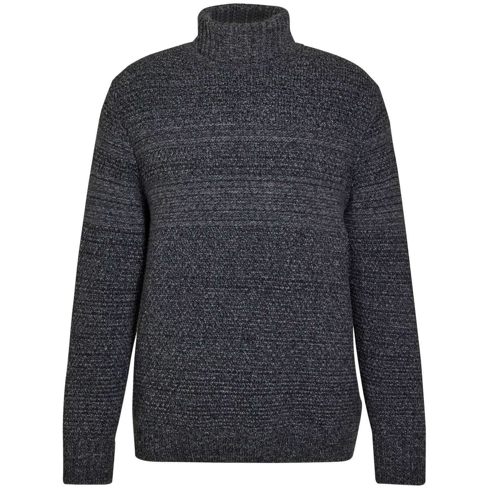 • Grobstrick, Blockstreifen auf der Brust, normale Passform, französische Schultern, gerippter Rollkragenpullover, gerippte Bündchen, hochwertige „Fully Fashioned“-Verarbeitung