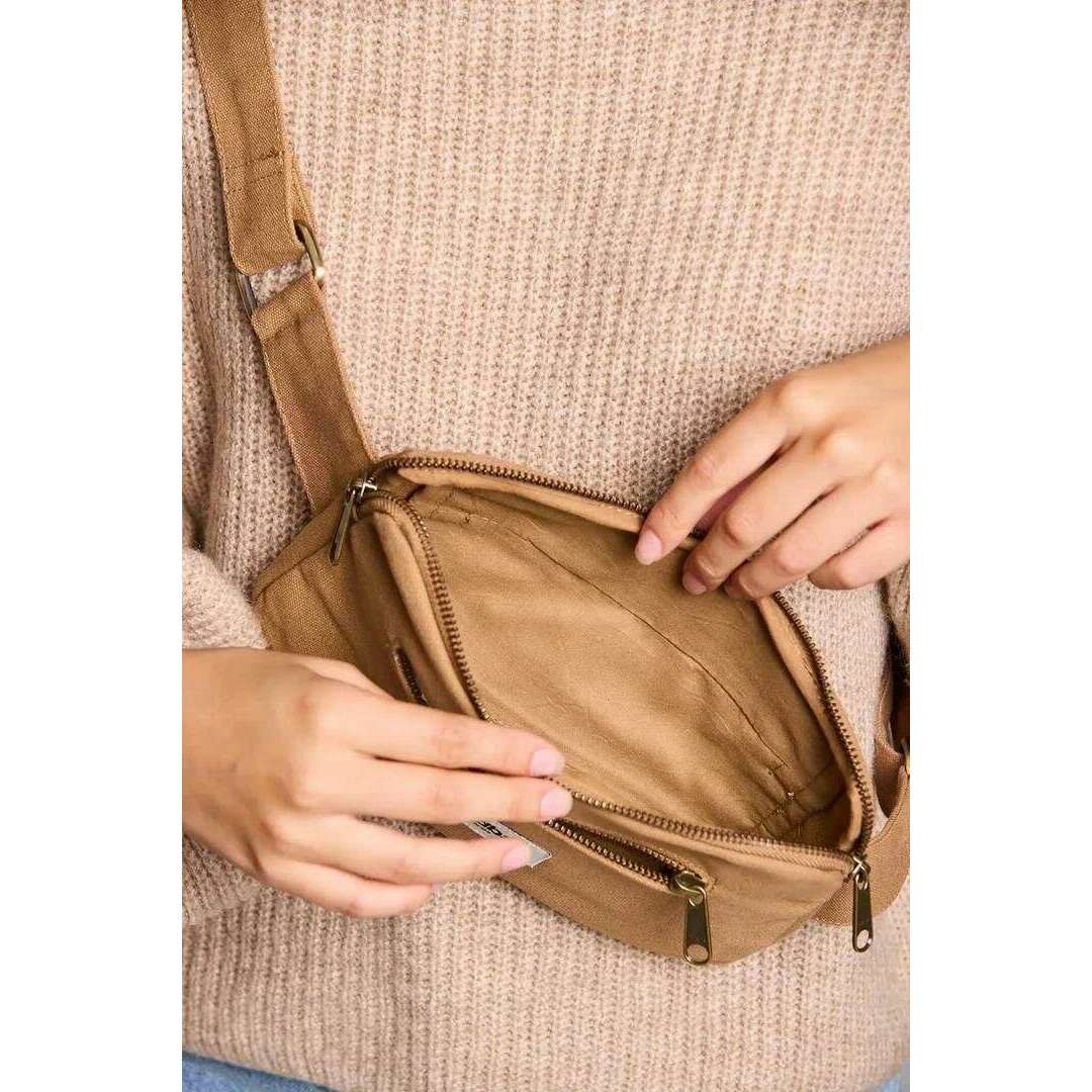 • Organischer, recycelter, verstellbarer Riemen, Außenrücken- und Vordertaschen