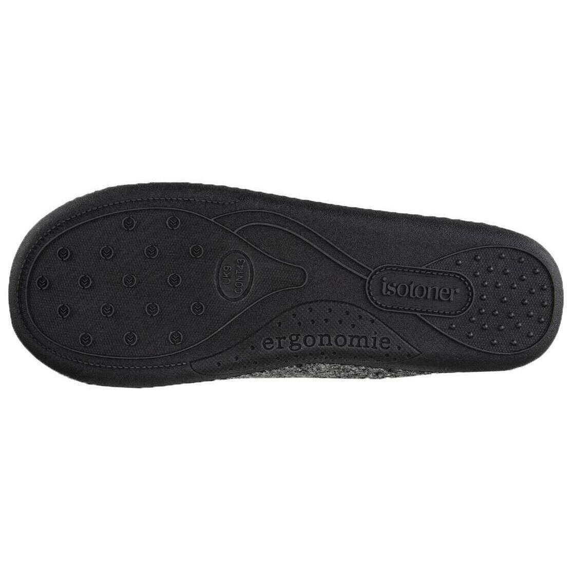 Diese Herren-Filzpantoffeln mit durchgehendem Rücken der Marke Isotoner bestehen aus 60 % Polyester und 40 % Wolle und sind in Grau gehalten. Auch die grauen Hausschuhe sind in einem schlichten Muster gestaltet. Es wird empfohlen, sie nur von Hand zu waschen, um diese Hausschuhe in gutem Zustand zu halten. Alle Hausschuhe werden komplett mit Isotoner-Verpackung geliefert. Die klassischen und trendigen Isotoner Filz-Hausschuhe mit durchgehendem Rücken in Grau bieten großartigen, außergewöhnlichen, unschlagbaren Komfort für die Ewigkeit. Dieses Paar verfügt über Komfort-Memory-Schaum und Pillow-Step-Dämpfungstechnologie mit einer zusätzlichen Fersenschicht für zusätzlichen Halt. Um einen sicheren Tragekomfort zu gewährleisten, verfügt dieses Paar an der Vorderseite über einen Knebelgriff für eine verstellbare Haptik. Abgerundet mit einer langlebigen Ergo-Dot-Sohle.