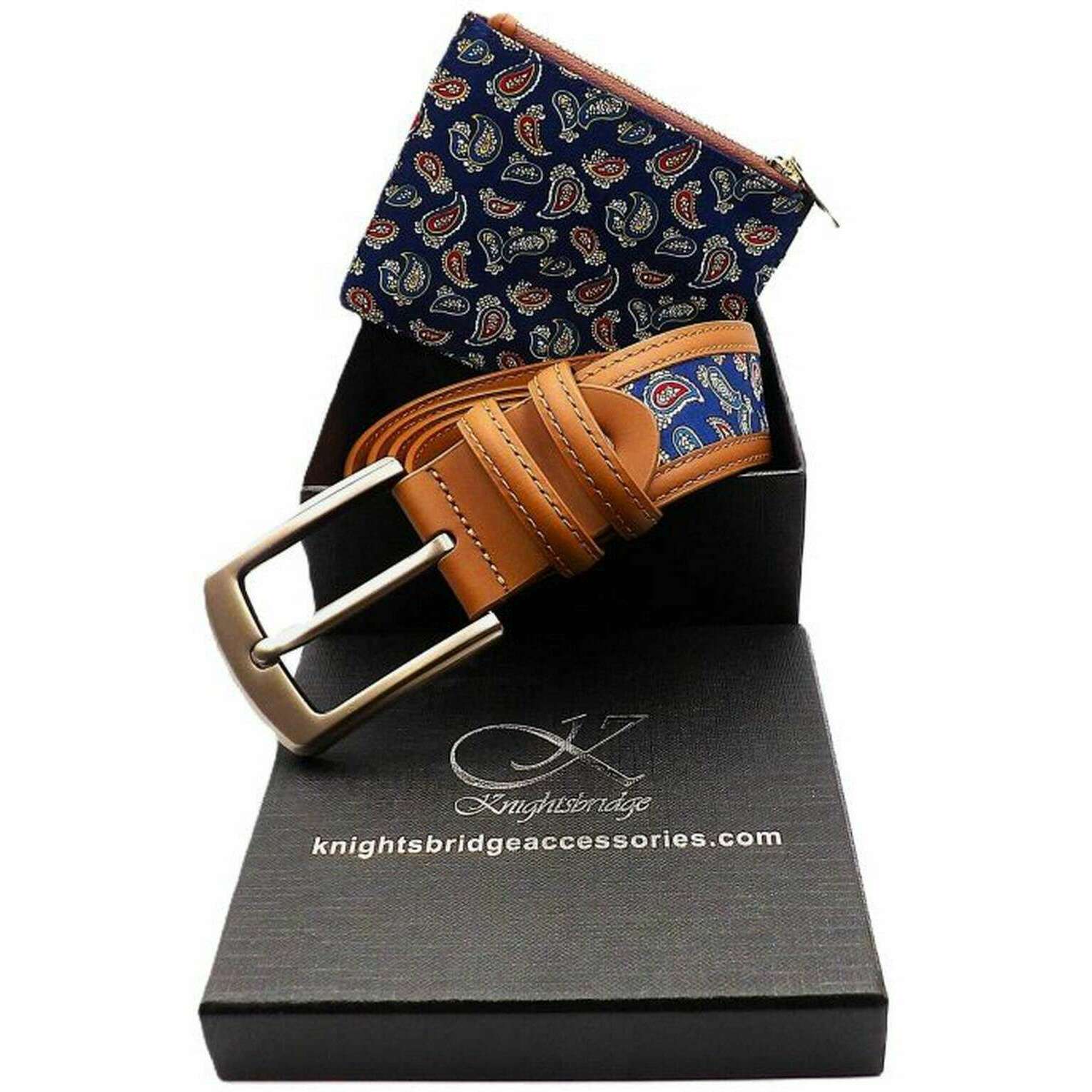 Knightsbridge Neckwear Belgravia Paisley-Gürtel- und Geldbörsen-Set – Hellbraun/Beige