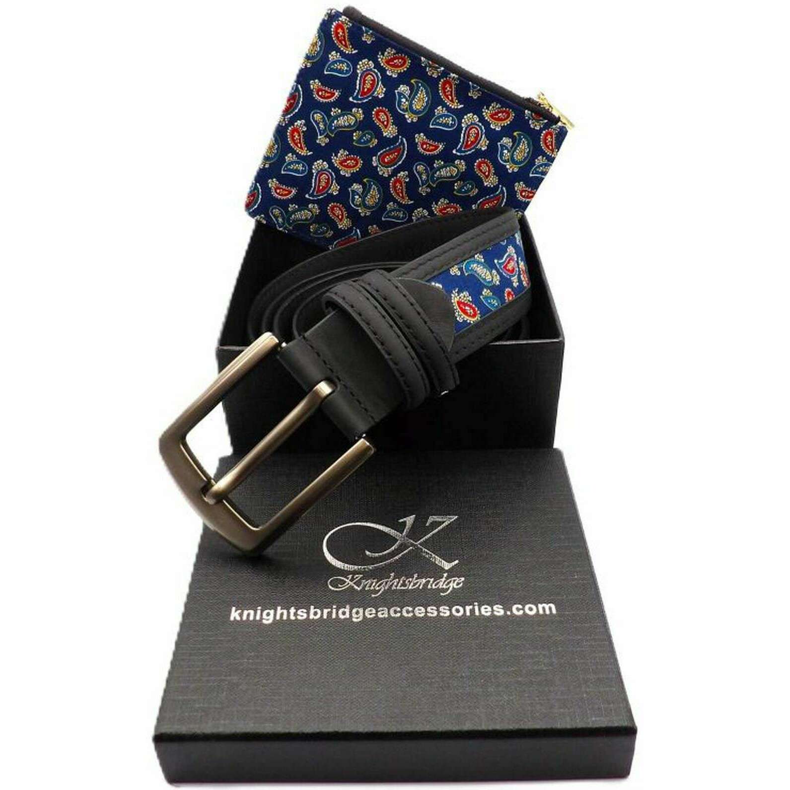 Knightsbridge Neckwear Mayfair Paisley-Gürtel- und Geldbörsen-Set – Schwarz