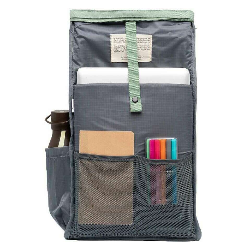 Dieser Unisex -Roll -Mini -Rucksack der Marke LeFrik besteht aus 100% recyceltem Oxford Rpet -Stoff und wird in Grün gezeigt. Es misst 35 cm (Höhe) x 23 cm (Breite) x 12 cm (Tiefe). Alle Taschen sind mit LeFrik -Verpackungen ausgestattet. Der LeFrik Roll Mini -Rucksack - New Sage Green ist für Vielseitigkeit, Nachhaltigkeit und Bequemlichkeit ausgelegt. Mit einem gepolsterten Fach für Laptops oder elektronische Geräte von bis zu 13,6 Zoll verfügt dieser Roll-Top-Rucksack auch über einen Reißverschluss in Taschen- und Mesh-Organisatoren für kleine Objekte. Die hintere Sicherheitstasche und die externen Seitentaschen bieten zusätzlichen Platz. Leicht mit verstellbaren Baumwollgriffen ist dieser Mini Roll-Top-Rucksack für verschiedene Aktivitäten geeignet, von täglichen Pendeln bis hin zu Outdoor-Abenteuern.