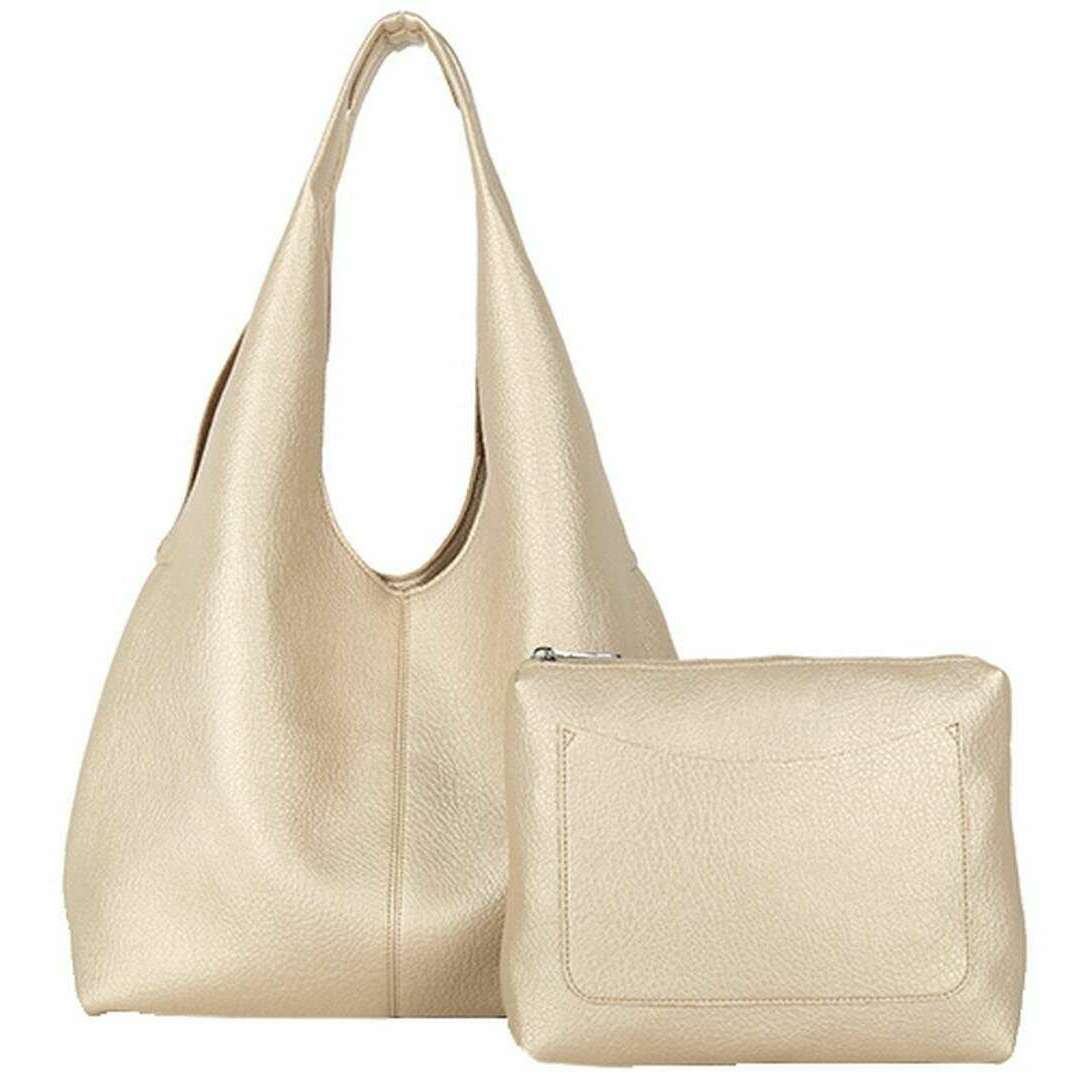 Designer Long and Son hat Ihnen diese Damentasche aus 100 % Polyurethan in Goldtönen präsentiert. Es misst 57,5 ​​cm (Höhe) x 45 cm (Breite) x 14 cm (Tiefe). Alle Taschen werden komplett in einer Long & Son-Verpackung geliefert. Die Long and Son Schultertasche und Beutel – Gold, modern und einzigartig, ist eine tolle Alltagstasche. Der große Innenraum bietet Platz für alle wichtigen Dinge und mehr und ist somit die perfekte Tasche für Besorgungen, einen Familienausflug oder einfach beim Einkaufen. Die glänzende Außenseite aus Kunstleder ist tierversuchsfrei und verleiht jedem Outfit mehr Tiefe und Eleganz. Komplett mit einem abnehmbaren Beutel, um Ihre Sachen zu organisieren oder wertvollere Gegenstände aufzubewahren.