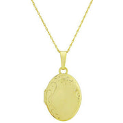 Dieses handgravierte Medaillon für Damen wurde von der Marke hergestellt Mark Milton in Goldfarbe und besteht aus 9-karätigem Gold. Es misst 46 cm (Länge). Alle Halsketten werden komplett in einer Mark-Milton-Verpackung geliefert. Die Mark Milton Handgraviertes Medaillon – Gelbgold mit zartem, handgraviertem Golddesign auf der Vorderseite und einer glatten Satinoberfläche auf der Rückseite. Dieses bedeutungsvolle Geschenk hat die ideale Größe und eignet sich perfekt für Minifotos von geliebten Menschen und sogar für kleine Erinnerungsstücke.