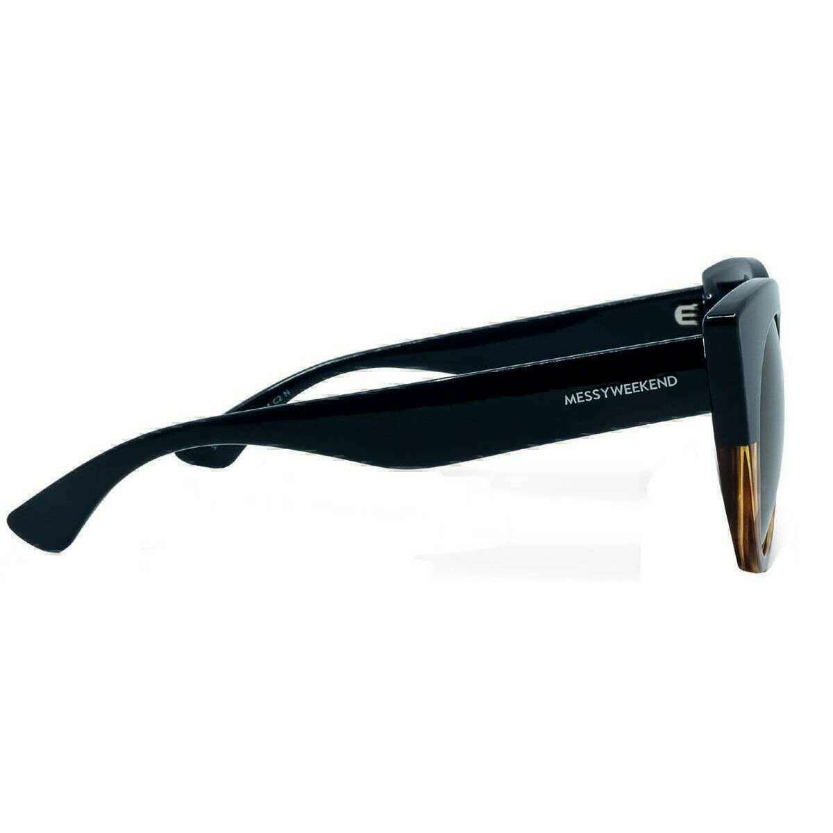 • Handgefertigter Polycarbonatrahmen, hochwertige Anti-Kratzer-Objektive, 100% UVA+UVB-Schutz, nickelfreie Scharniere, Messyweekend-Logo am Tempel