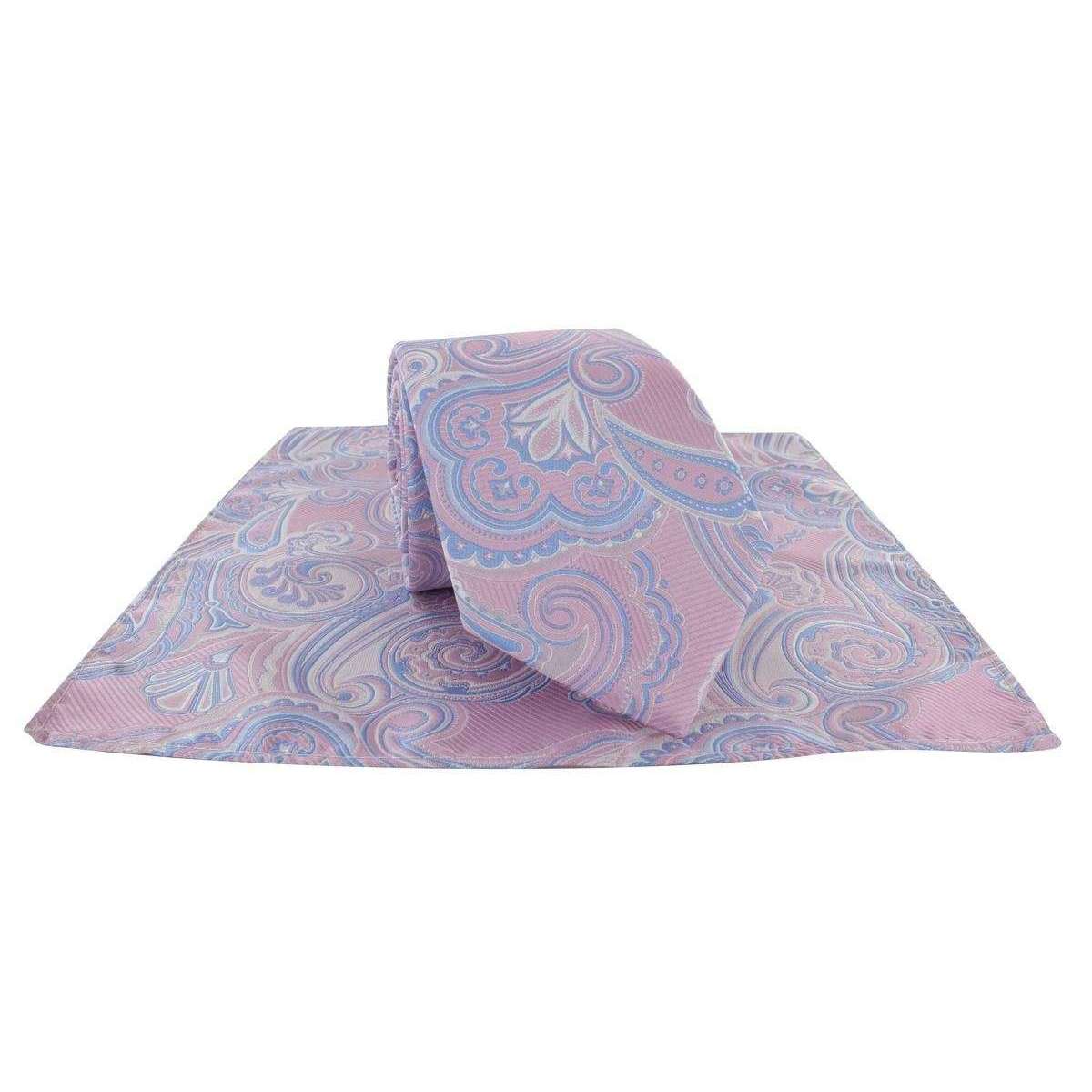 Michelsons of London Definierte Paisley Polyester Krawatte und Pocket Square Set - Pink