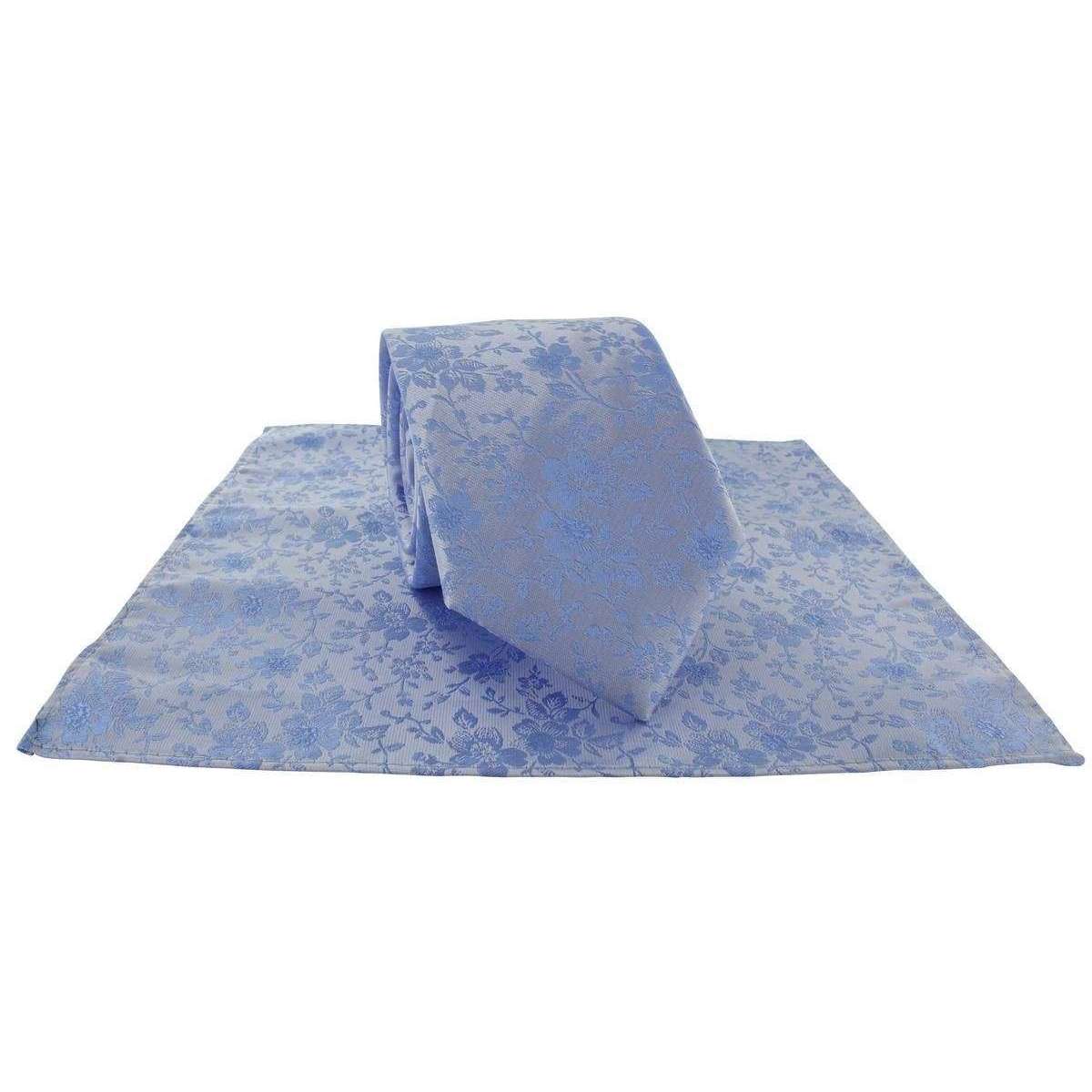 Michelsons of London Zarte Blumen Hochzeit Krawatte und Pocket Square Set - hellblau