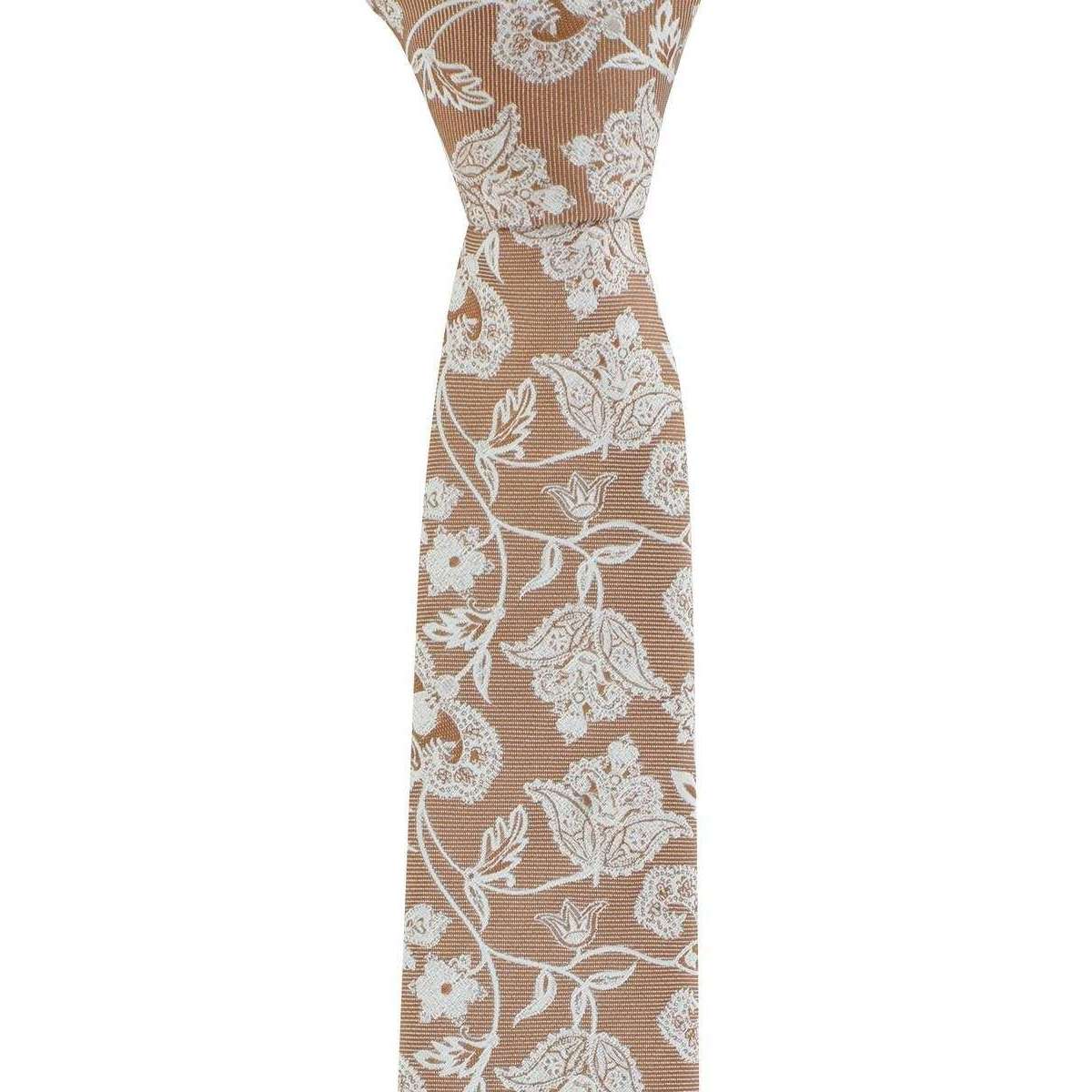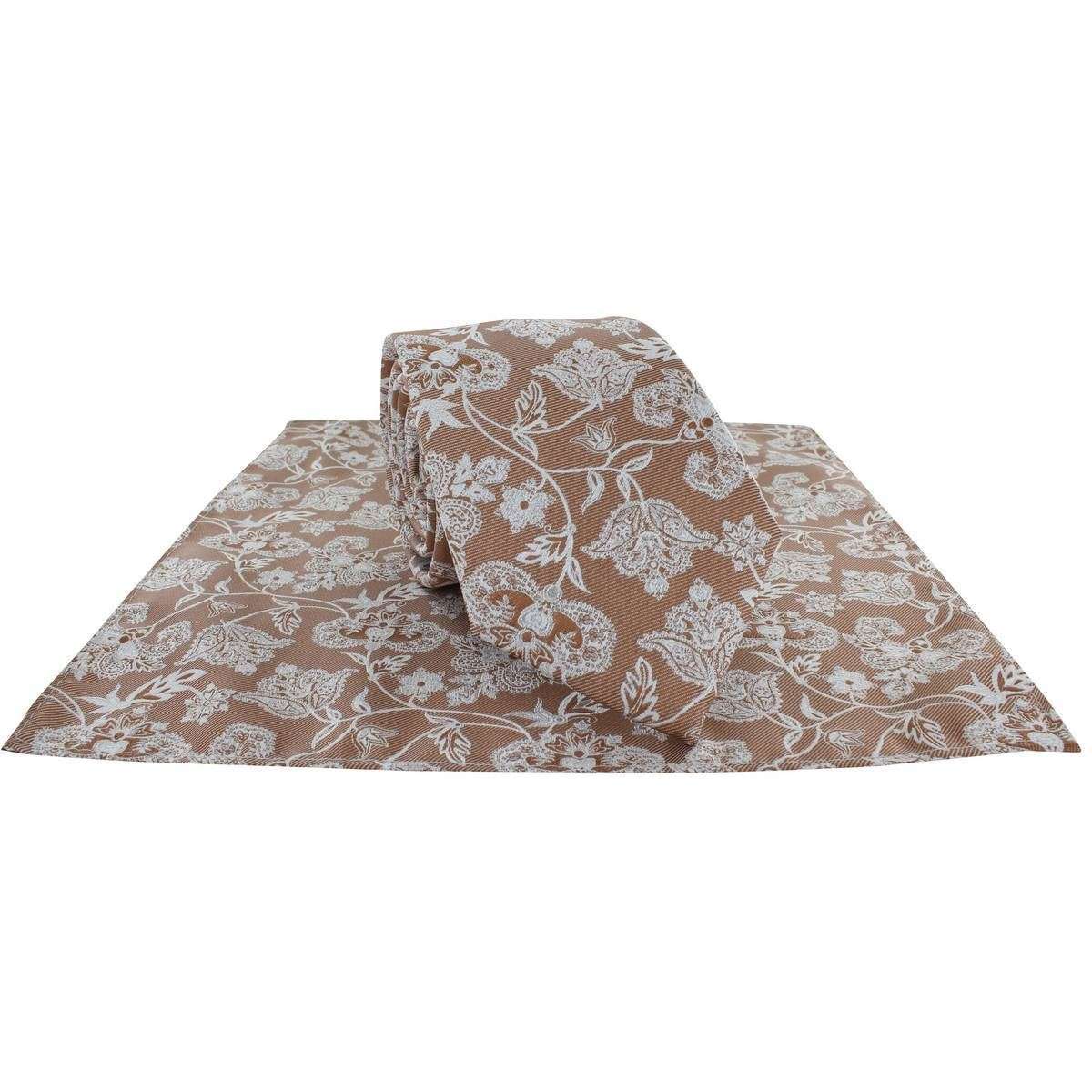 Michelsons of London Weitläufige blumige Polyesterkrawatte und Pocket Square Set - braun
