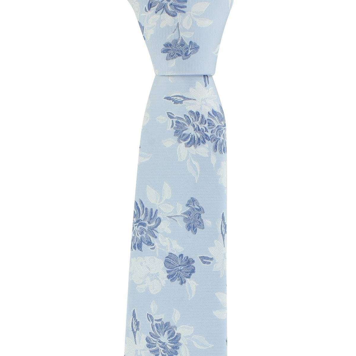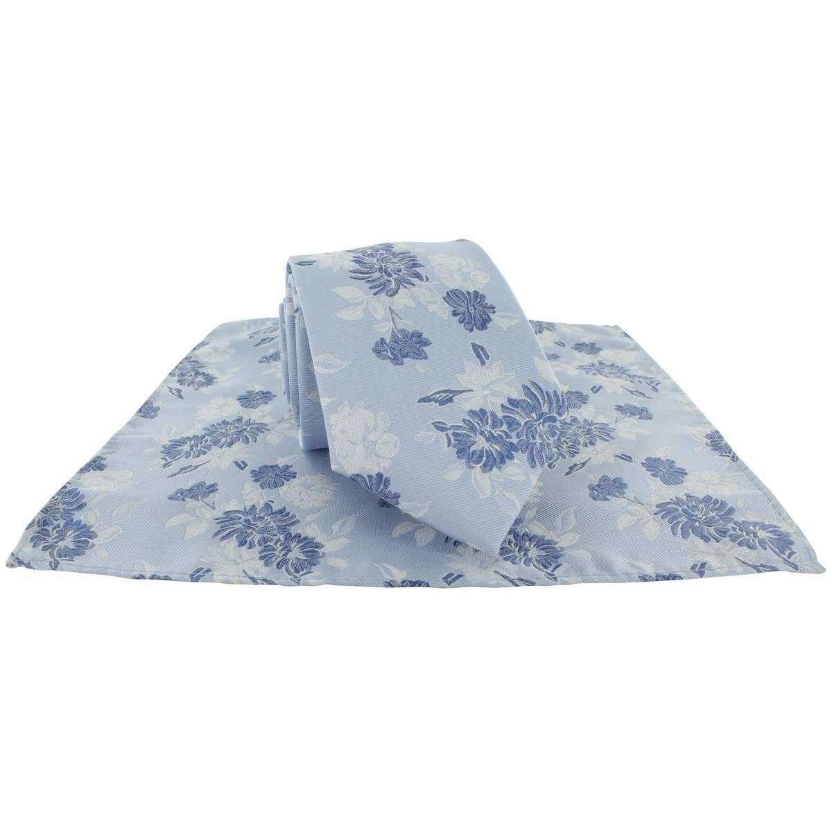 Michelsons of London Sommerzeit florale Polyesterkrawatte und Pocket Square Set - Blau