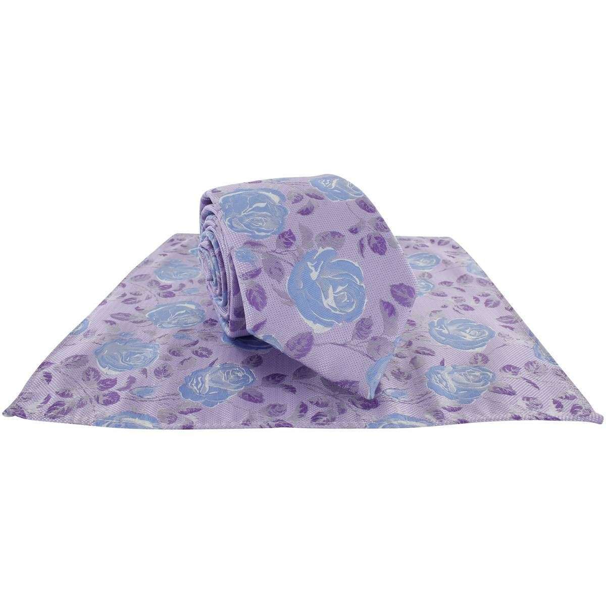 Michelsons of London Strukturierte Rosenblumen -Polyester -Krawatte und Taschenquadrat -Set - lila/blau