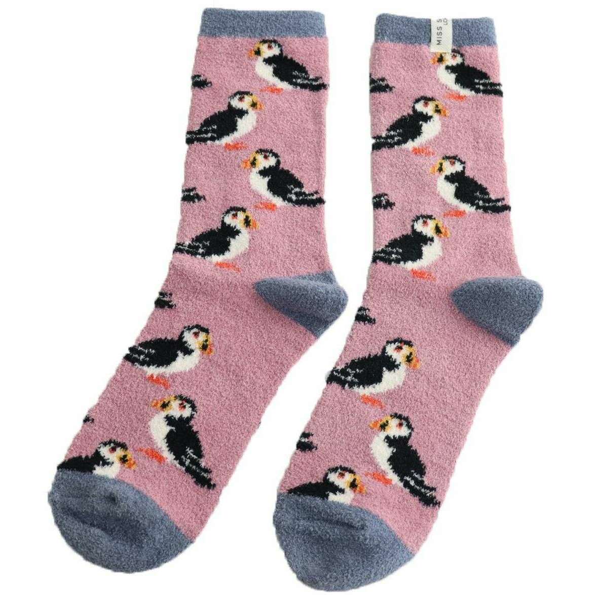 Miss Sparrow London Puffin Flauschige Socken – Mauve Lila