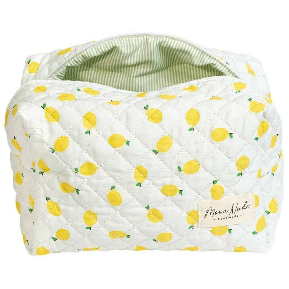 Diese große Limonade-Make-up-Tasche für Damen wird von der Marke Moon Nude in weißer Farbe hergestellt und besteht aus 100 % Baumwolle. Es misst 15 cm (Höhe) x 25 cm (Breite) x 15 cm (Tiefe). Es wird empfohlen, es von Hand in kaltem Wasser mit einem milden Reinigungsmittel zu waschen oder es im Schonwaschgang auf links zu waschen. um diese Tasche in gutem Zustand zu halten. Alle Taschen werden komplett in einer Moon-Nude-Verpackung geliefert. Die große Make-up-Tasche Moon Nude Lemonade – Weiß/Gelb ist ein absolutes Muss für Ihr Zimmer oder Ihre Alltagstasche. Diese Make-up-Tasche bewahrt alle Ihre am häufigsten verwendeten Produkte garantiert sicher auf und ist mit ihrem handgefertigten Steppdesign gleichzeitig stilvoll und schick.