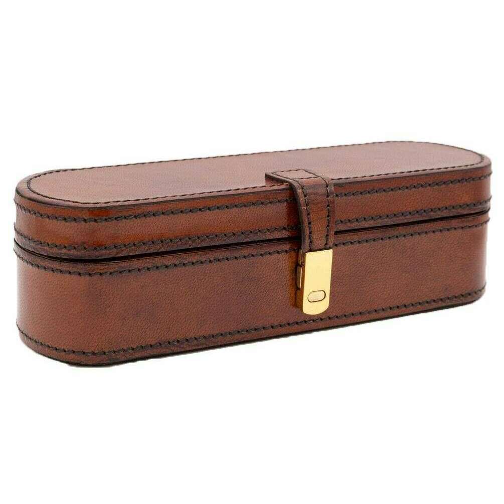 Orton West Leder gerundete Eckschmuckschachtel - braun